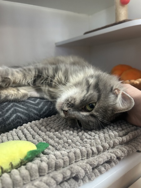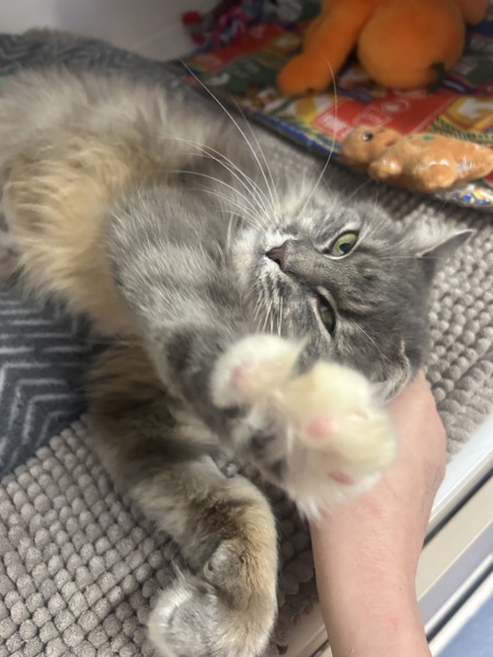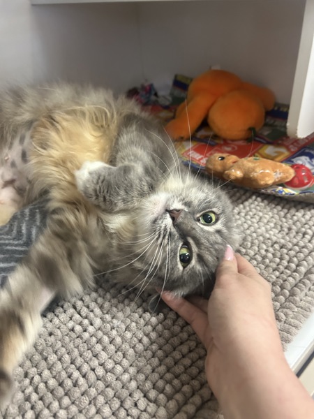 Hello darling. I am Shoundie - and yes, I am every bit as elegant as I look.I am a very pretty lady, thank you for noticing, and I carry myself accordingly. I enjoy soft places to rest, gentle attention, and a household that understands I deserve only the finest treatment. I am affectionate, of course, but on my terms... though I must admit I do rather enjoy being adored. Once I have decided you are acceptable company, I will reward you with my presence - purring beside you, accepting head scratches, and gracefully supervising your every move. I like to be near my people, especially if they understand that I am not just a cat... I am a princess. I am looking for a calm, loving home where I can feel safe, pampered, and appreciated as I should be. In return, I will offer you devotion, warmth, and the honour of my company.If you are fortunate enough to earn my trust, you will find I am extremely affectionate... and perhaps even a little clingy when I am in the mood. But do not get ideas - I am still royalty.Now then... are you ready to meet me?Love,Shoundie