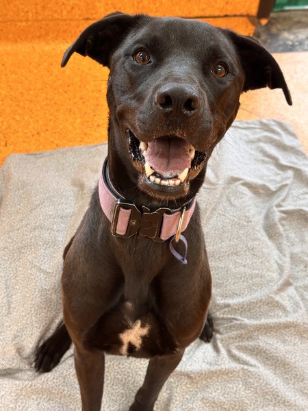 Paget (pronounced like "Gadget") is a lovely young lady who adores spending time with people. She can be a little jumpy when excited, but she is very smart, food-motivated, and already knows how to sit-making her highly trainable and responsive to positive guidance.