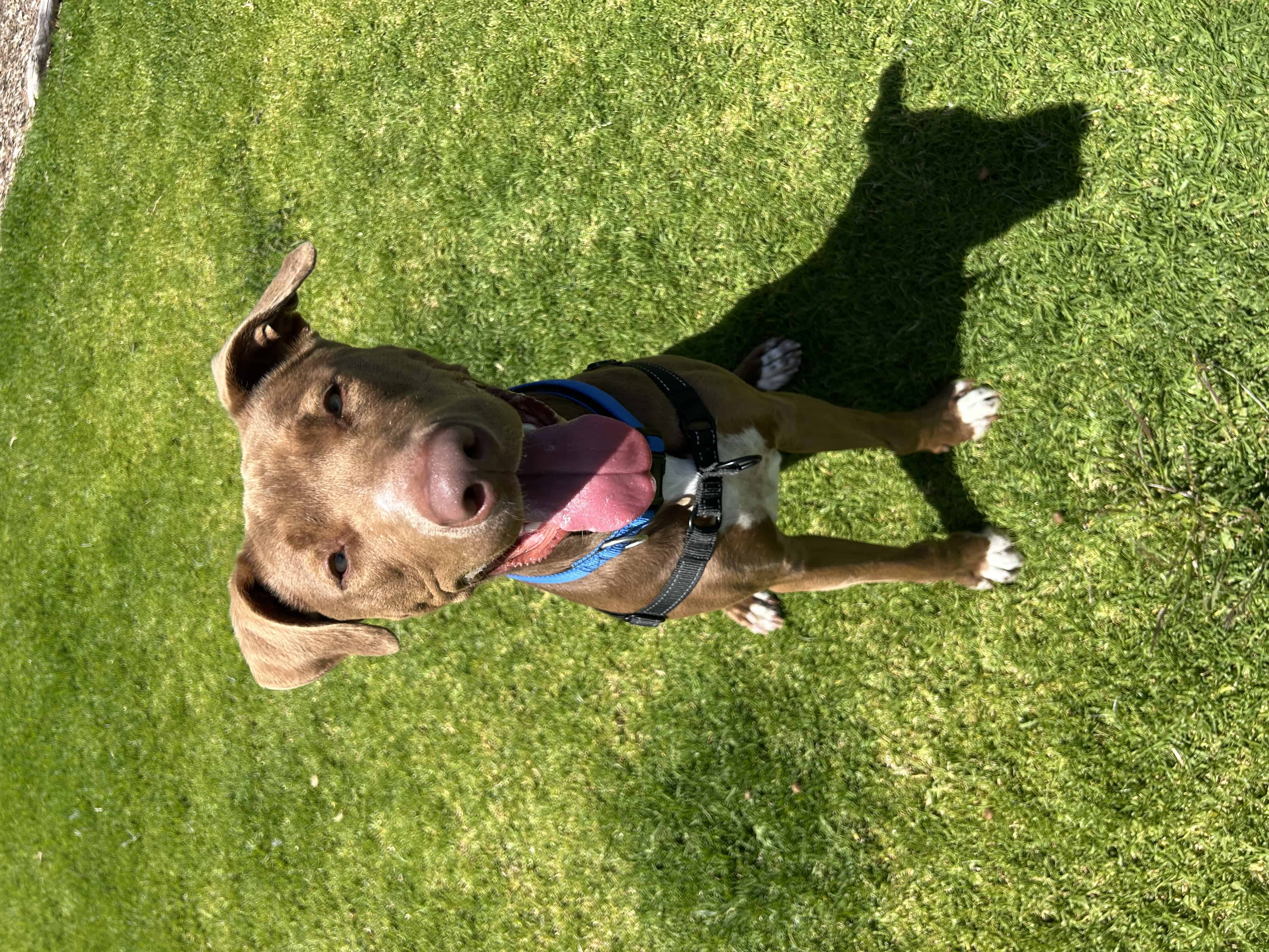 I’m a warm, soft-hearted boy with a dash of playful goofiness. Whether I’m trotting around with my big happy smile or lying outside soaking up the sunshine like a toasty bagel, I bring instant joy to everyone I meet. I love stretching my legs on a nice walk and running around the backyard it’s my favourite way to get my sillies out! At the end of the day, I’m all about the cuddles. I’d love nothing more than to curl up next to someone who will give me all the pats I could ever want. With a little basic training, I’ll be well on my way to being the best boy in the whole world.