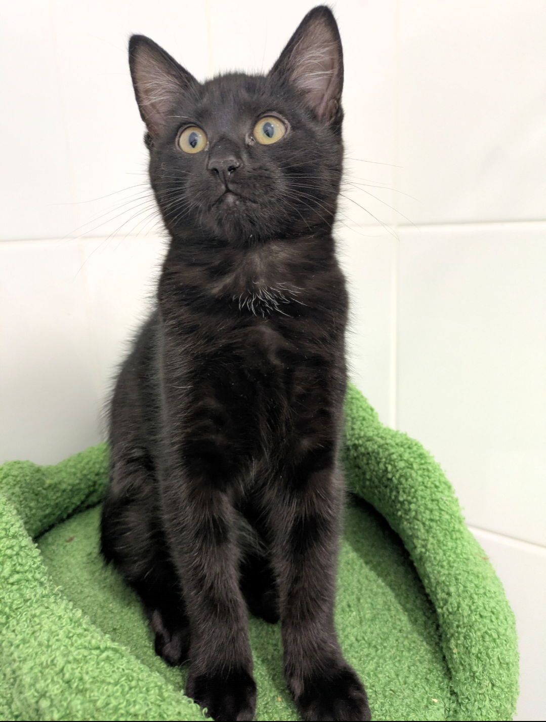Hi I'm Kizzy and I am very energetic and love to play a lot! If you're doing something then I want to be involved, if there's a new box then I want to see what's in it. It's my mission to investigate everything, you could say I'm quite in-kizzy-tive. I would love a home with another young feline friend to play with and someone who can play with me lots.