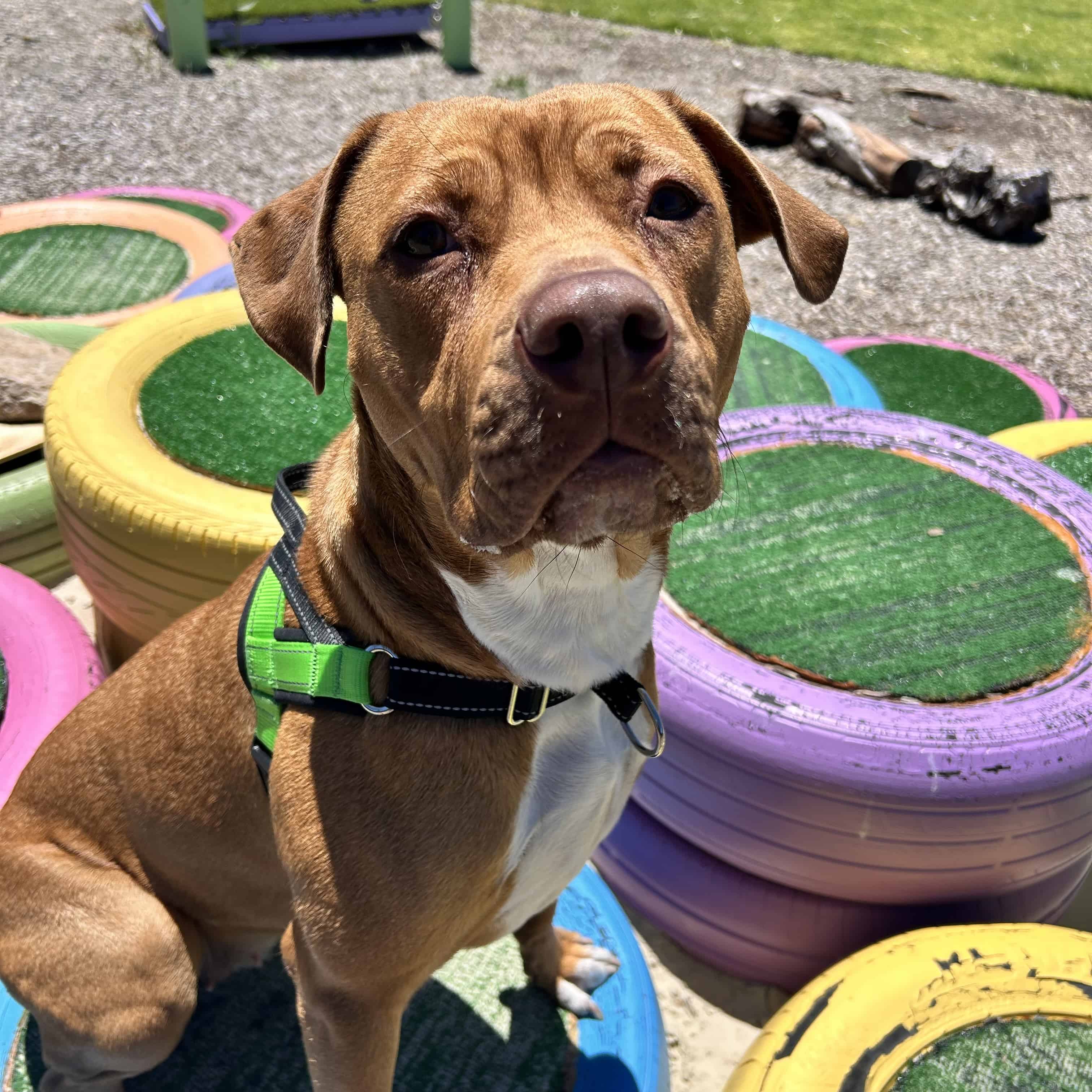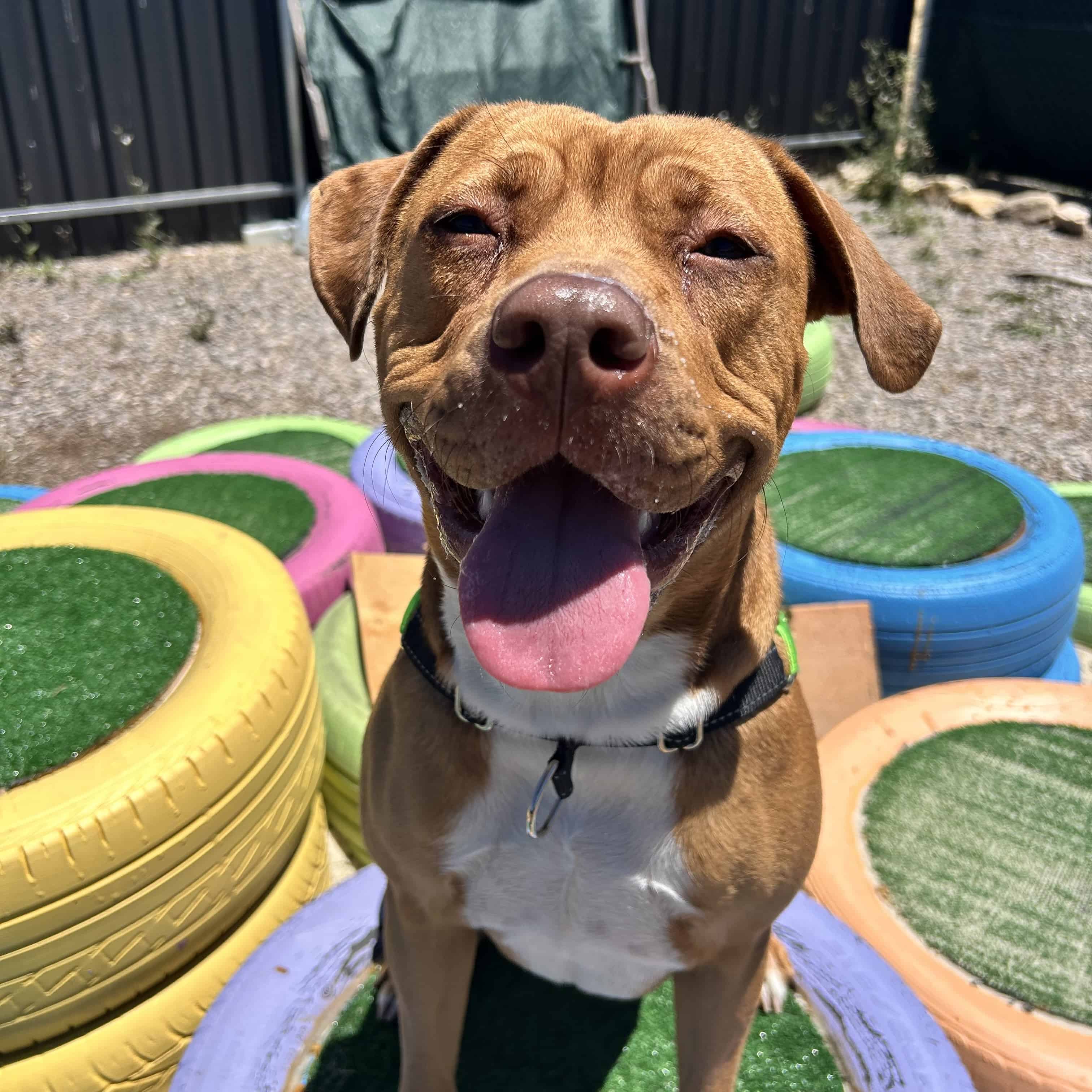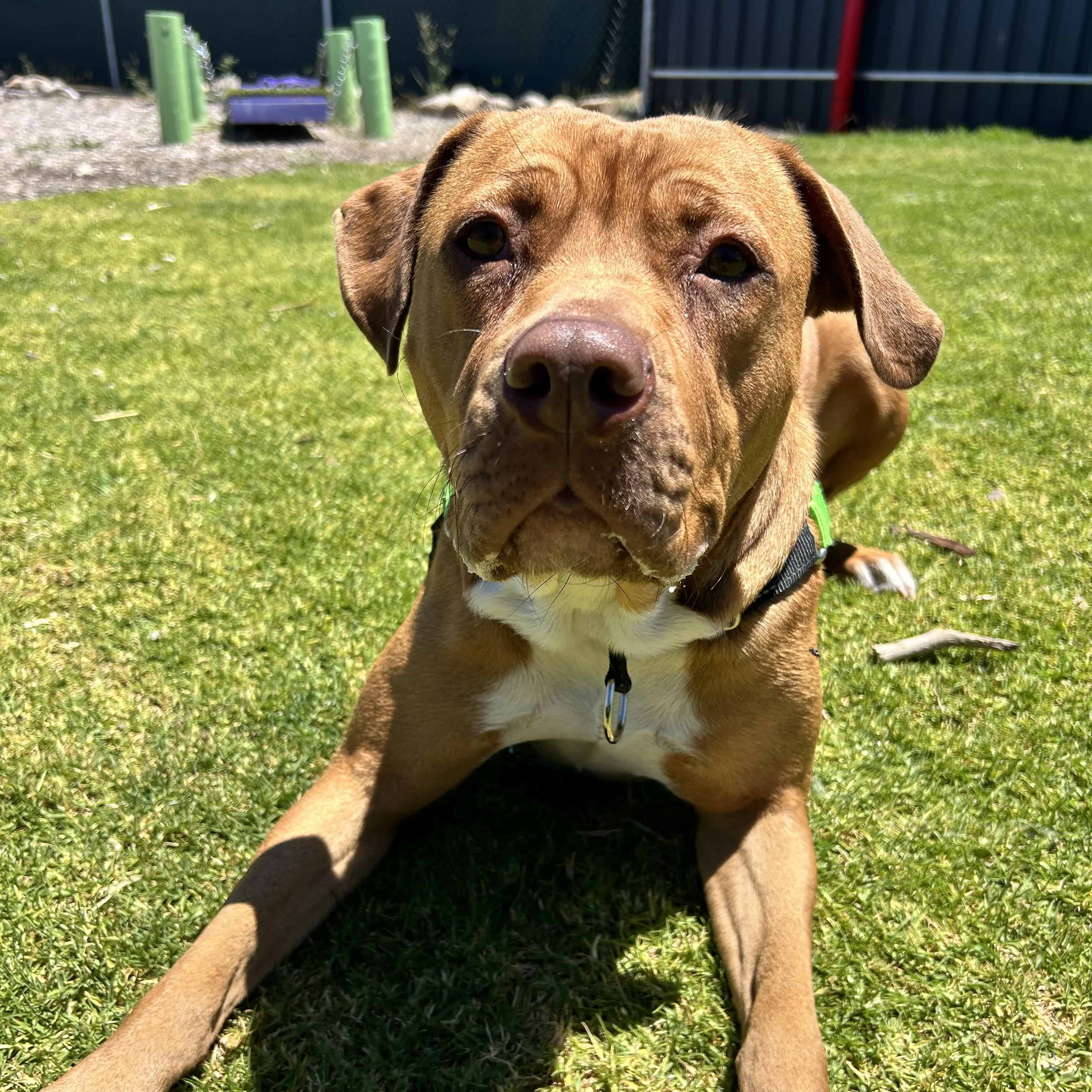It is so very nice to meet you, I hope we can meet in person as well! I am a sweet girl who is looking for a calm home where I can thrive and grow with my new family. I can be a little bit on the shy side when it come to new people, but once I'm comfortable (which does not take long if you have my favourite yummy snacks) I will show you my big puppy energy! My shelter parents don't know too much about my history, but what I have shown them in my time here is that I am a super loyal, goofy young lady who is so eager to learn. I love using my nose to search for treats and I learn new skills super quickly, I'm a smart cookie if you give me cookies (dog safe ones of course!).
