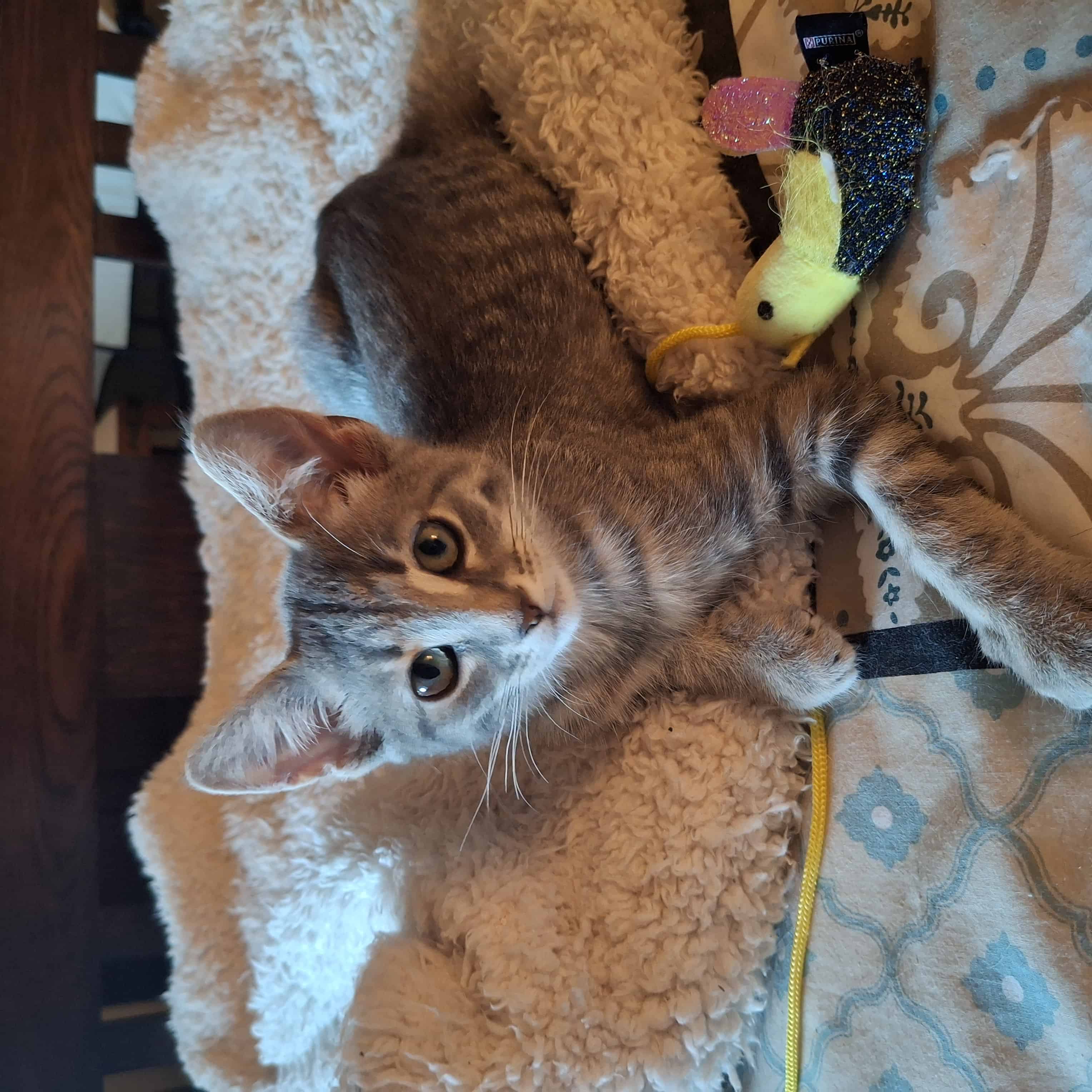 - lots of toys please! I am a playful kitten once I feel safe and venture out to explore my new world