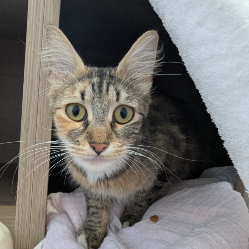 -I'm a friendly gal who loves to be showered with affection, but on my own terms. I need an adopter who respects my boundaries and understands my occasional need for solitude. I promise I'll fill your home with purrs, playful antics, and unconditional love. So why wait? Come meet me and let's start our forever friendship.
