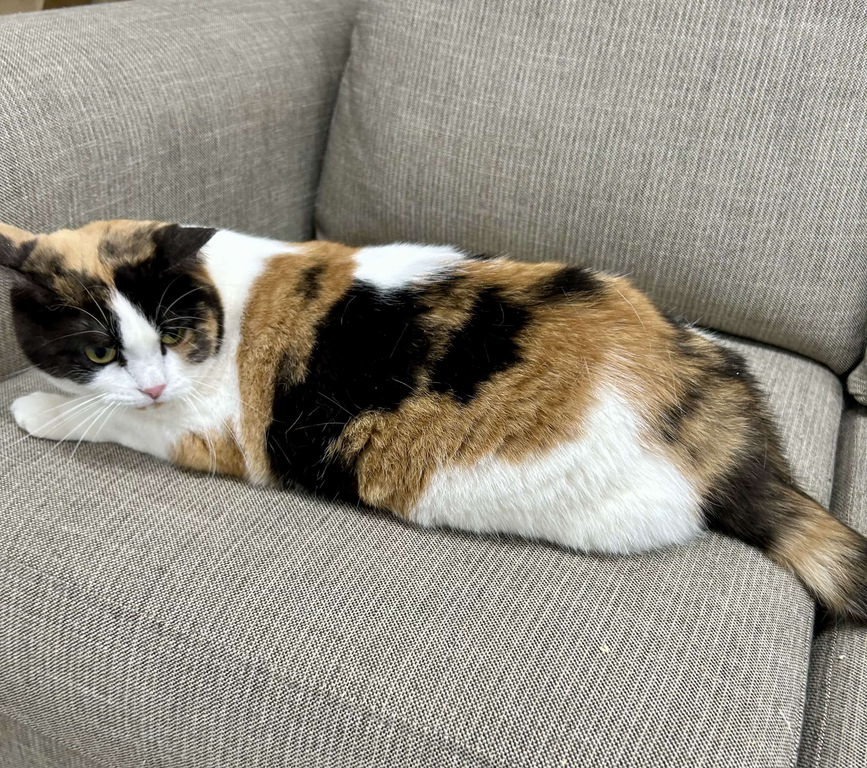 Hello there, I'm Dahlia! I'm a lovely, four-year-old Domestic Short Hair lady with an enchanting personality and a low-key approach to life. As a cat, I pride myself on being independent, but I also appreciate the company of my human friends, especially those who are 12 years or older. While I may not be the most playful kitty around, I have a certain charm that seems to win people over. I'm all about the lounging lifestyle - finding the warmest patch of sunlight to nap in is my idea of a perfect day. A quiet, calm home would be my paradise - somewhere I can relax and be my genuine, loving self. For me, experience matters. I'd do best with someone who's had a pet before and knows how to respect my space when I need it. What I value most is a loving, patient family who can give me the care and attention I need. If you think we might be a good fit, I'd love to meet you. Who knows, I might just be the feline friend you've been looking for. Come say hello, and let's find out!