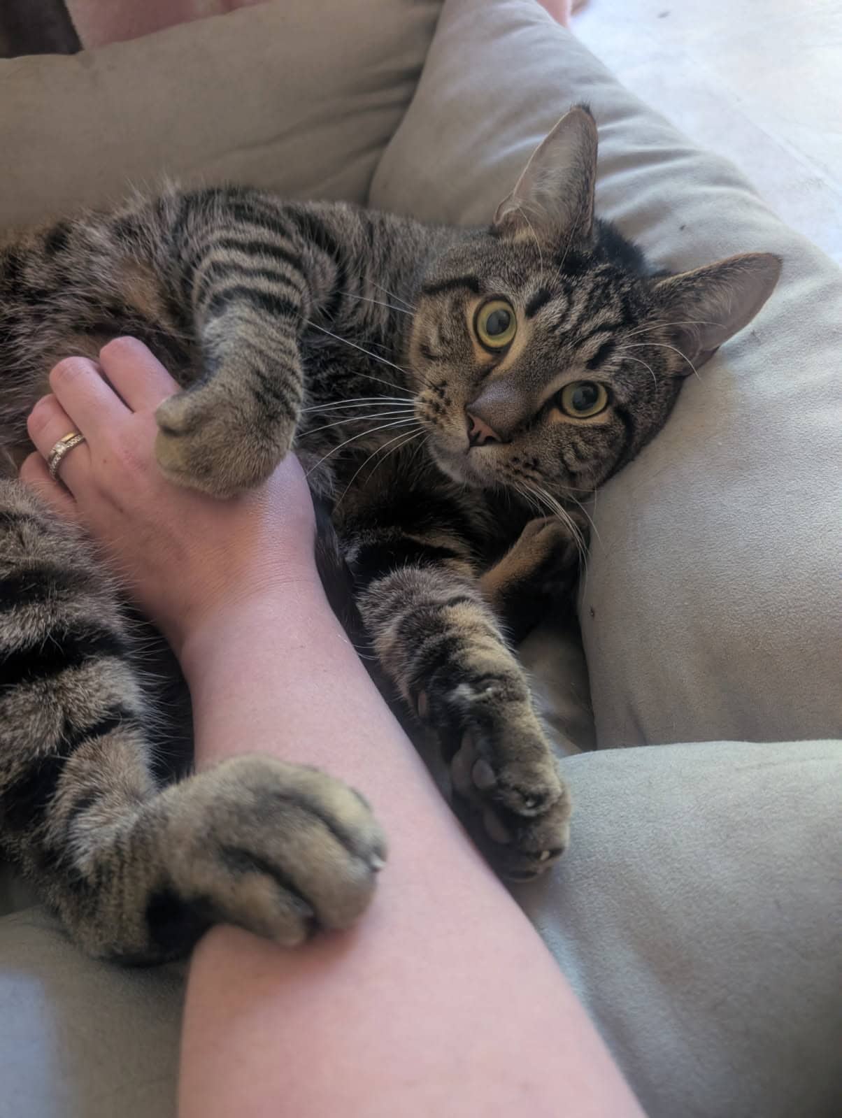 I’m the kind of cat who forms a strong bond with my people and appreciates patience and kindness. If you’re someone who understands that trust takes time, I promise I’ll reward you with warm cuddles, playful moments, and lots of love.