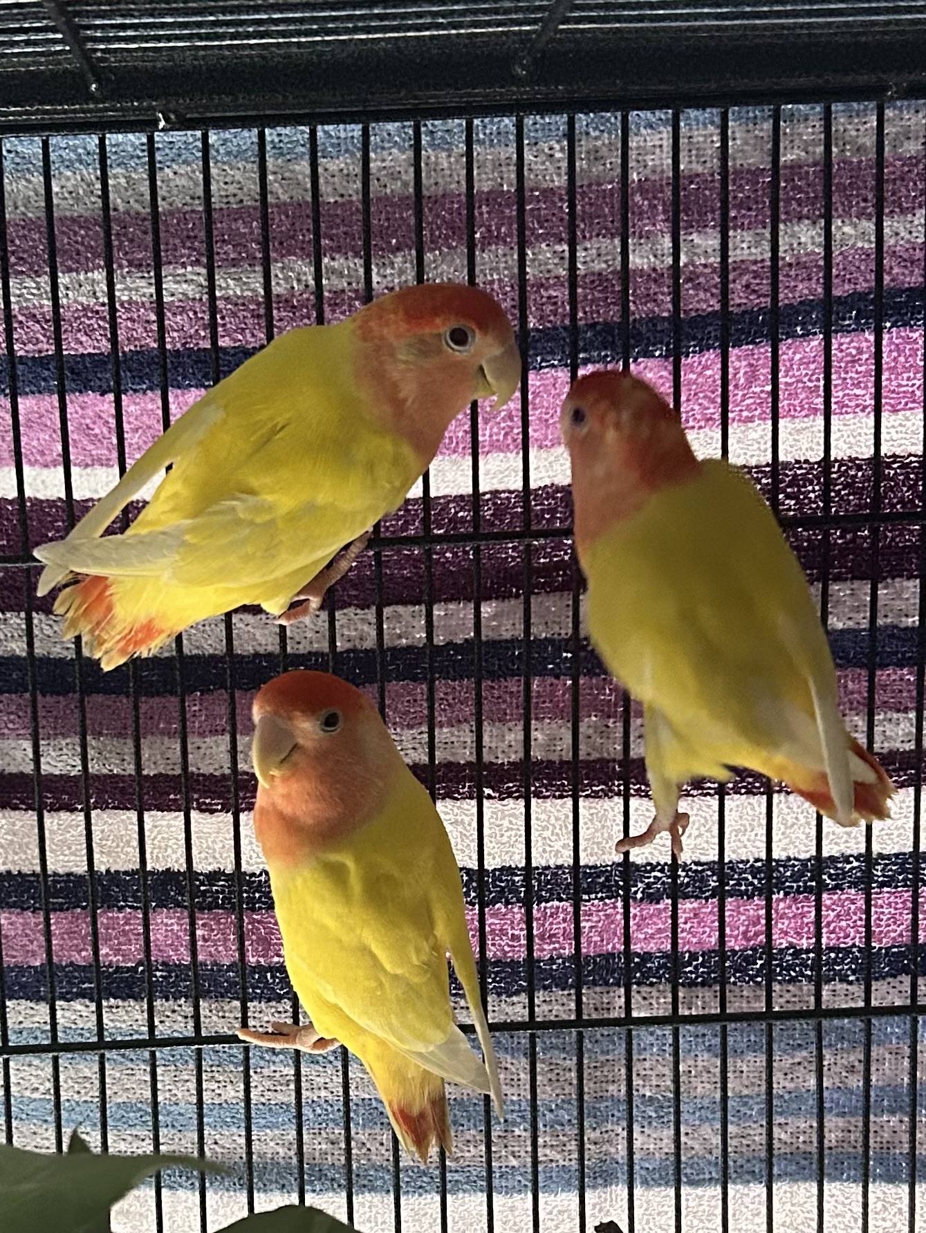 3 gorgeous lovebirds needing foster together Cage and food will be provided to you, you just need to provide a loving home! Please call the foster team for more information.