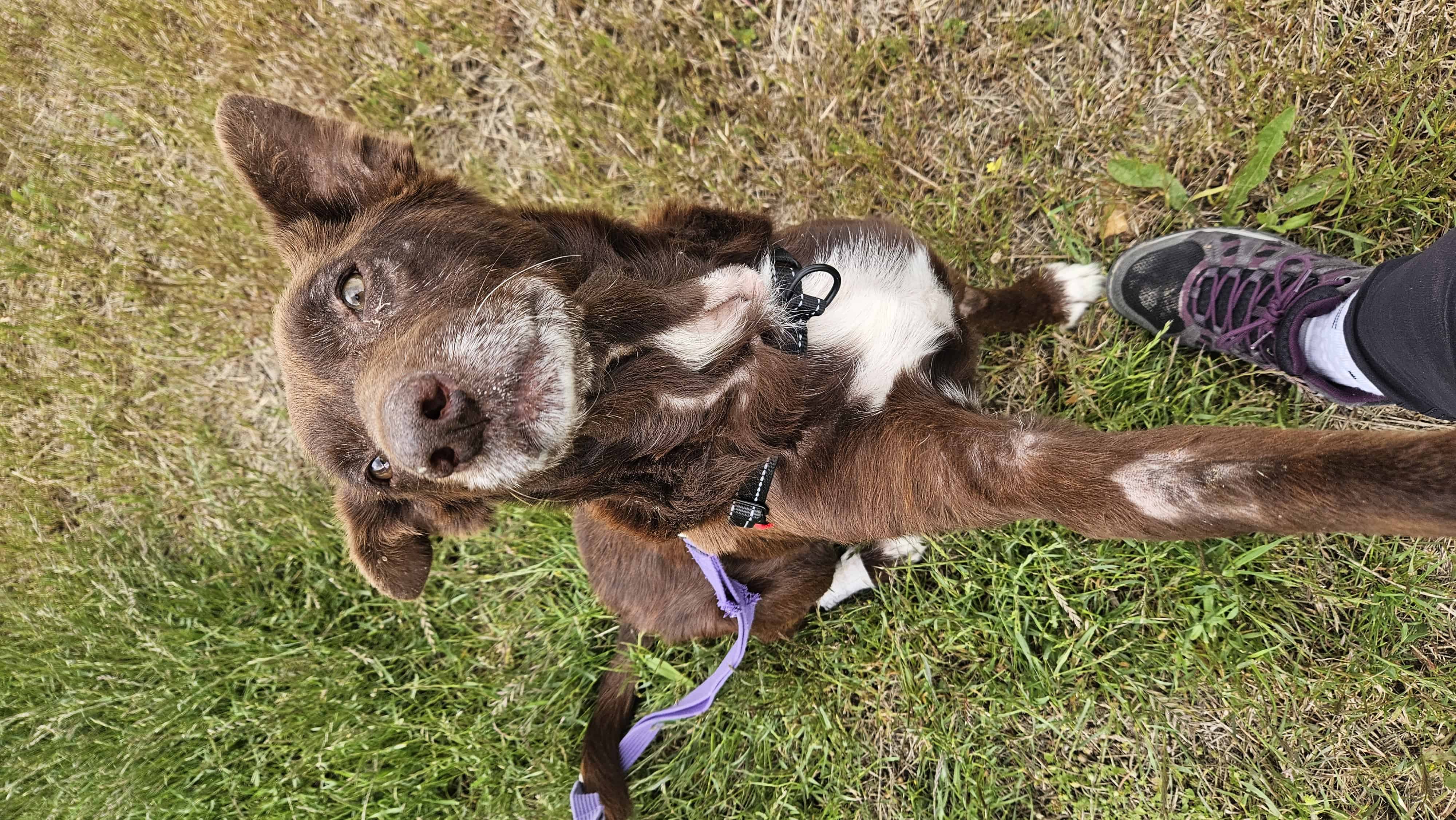 I am the sweetest, older gentleman that you will ever meet! I have had a rough start to life, but that has not gotten me down at all! I am a snuggly man with a heart of gold, very loyal and a lover of snacks. I would love a home where I can be spoilt rotten, as I deserve the absolute world. I am a social boy, and I am currently living with a cat in my foster home so if you have a cat friend in the home please speak to my shelter parents about how to safely introduce us in the home. I am excited to see what my future brings!