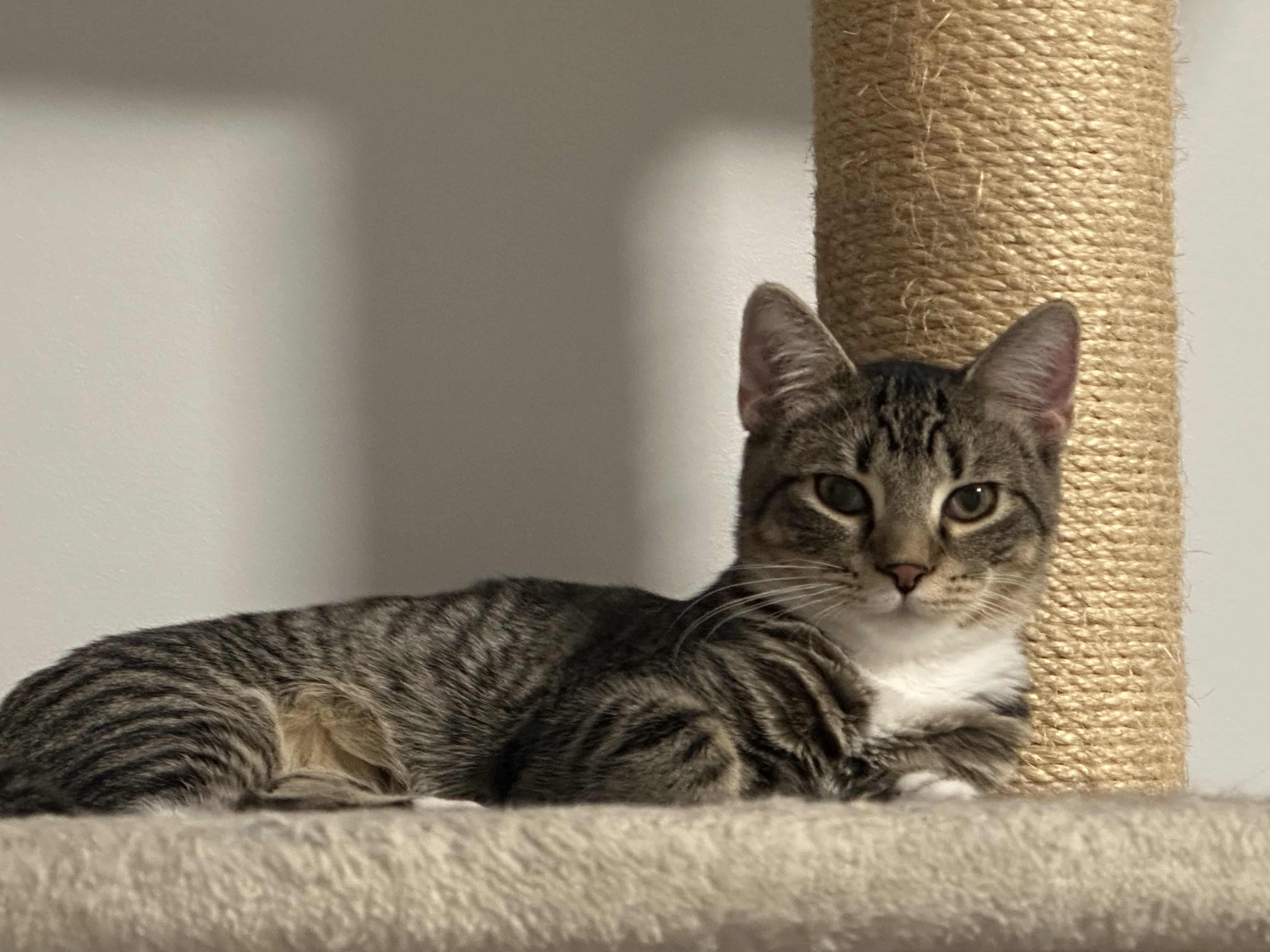 I can feel anxious if left alone for long periods, so I’d do best in a home where someone is around often, or with a friendly young cat (under 2 years old) to help me feel more confident.