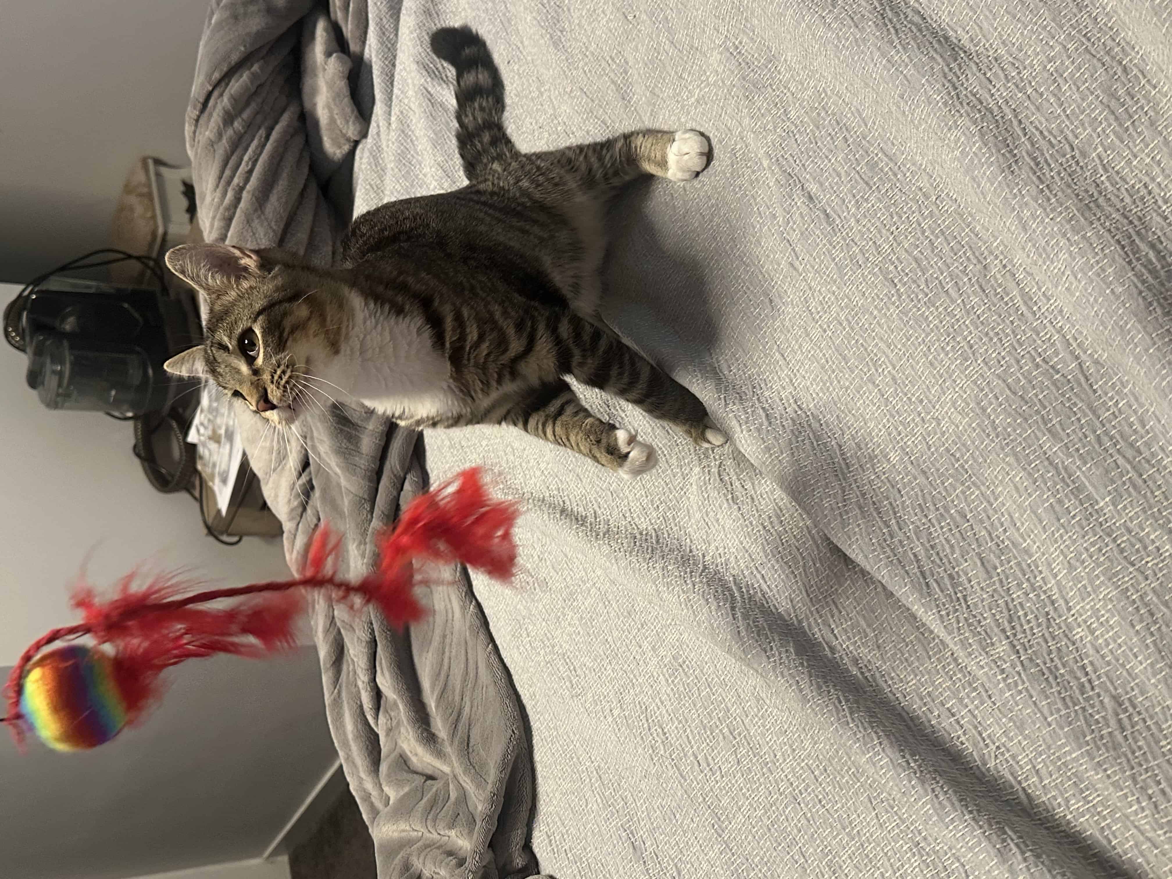 Once I’m comfortable, I enjoy playing, especially with feather wand toys! I’ve made great progress in foster care but may need time to adjust to a new environment before showing my true personality.