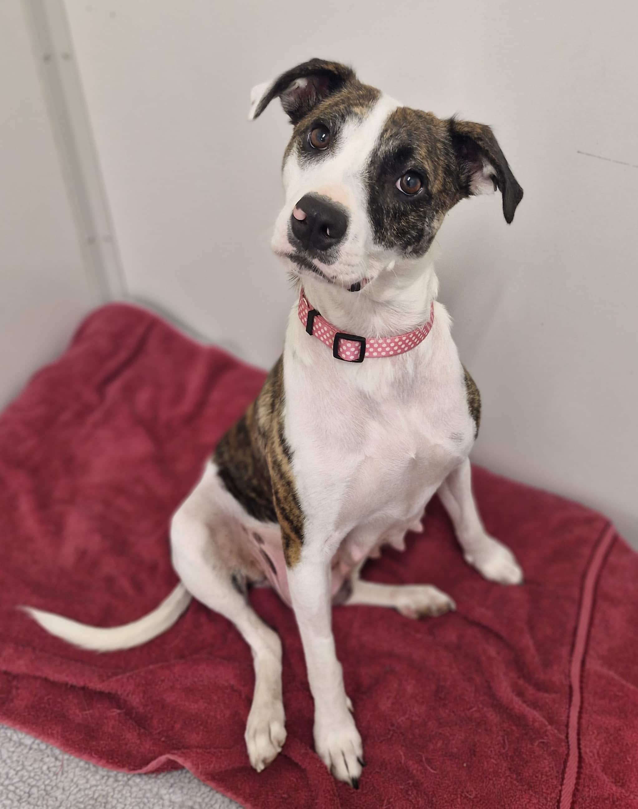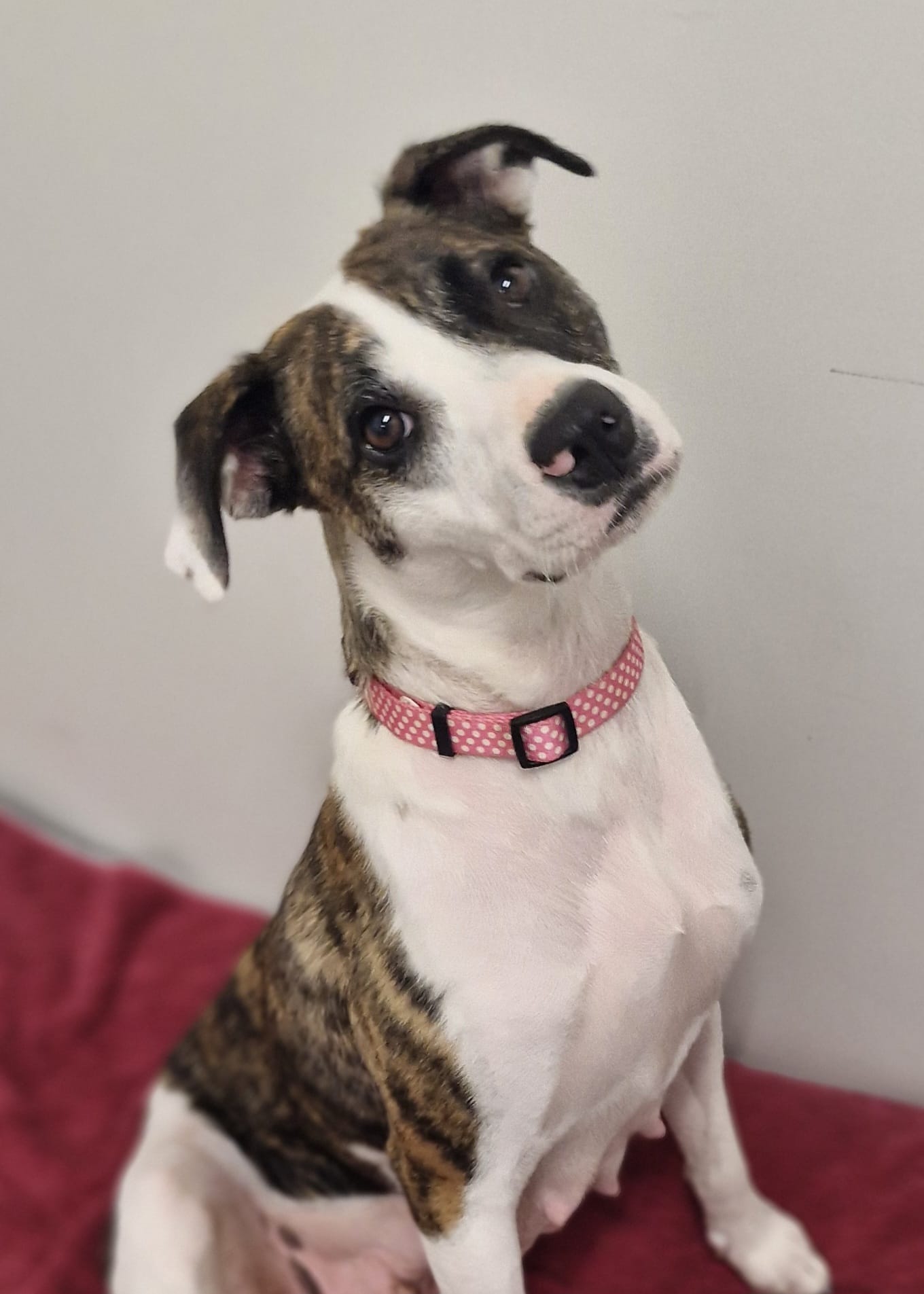 She is best suited to an experienced owner, ideally familiar with Staffy-type breeds, who can provide structure, reassurance, and gentle leadership. While she has no known issues with children, she would thrive most in a peaceful environment.