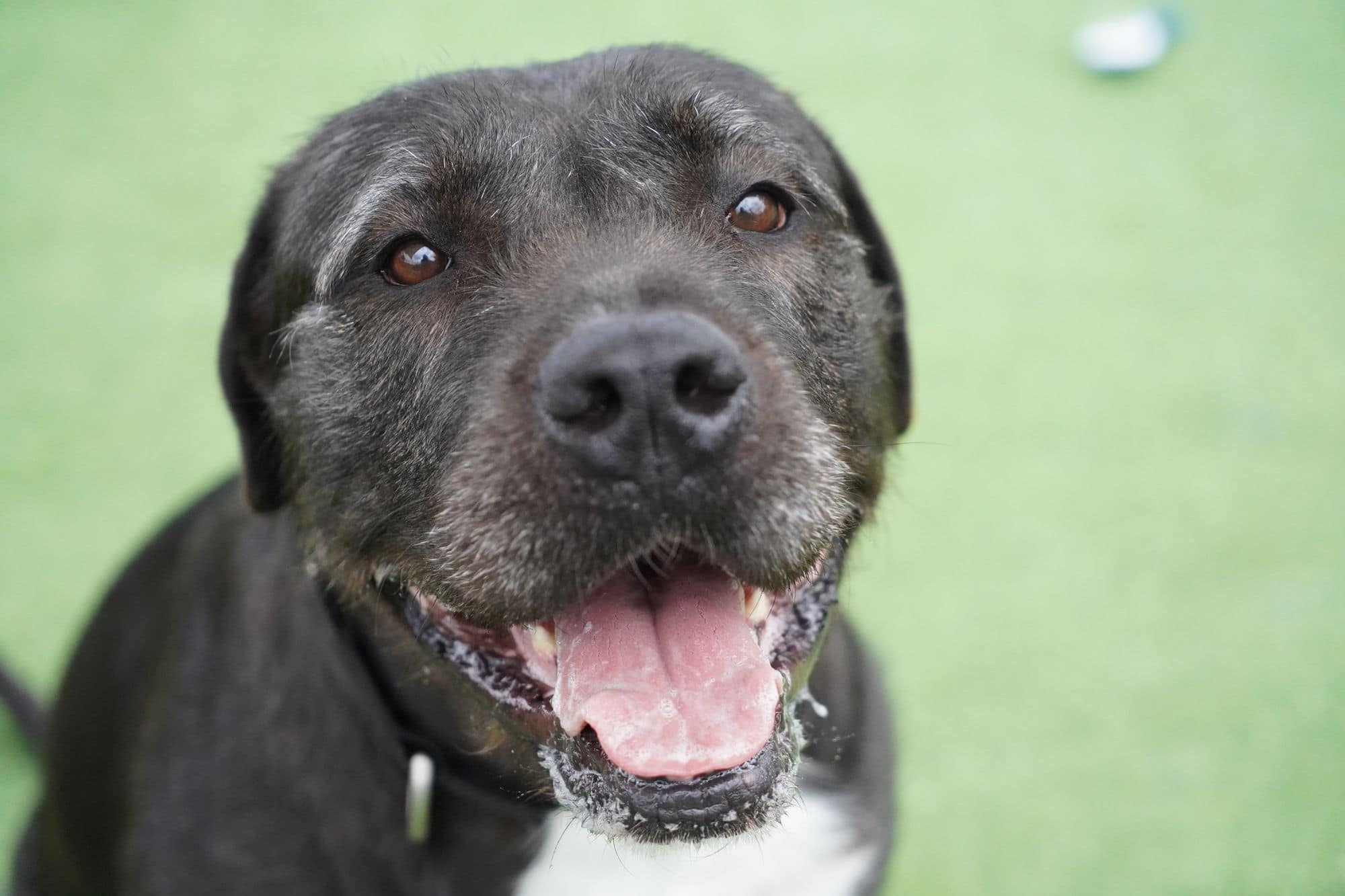 Because she’s such a big girl, she can land with a solid thump, so a little awareness around small children is helpful to make sure everyone stays safe during her enthusiastic moments.