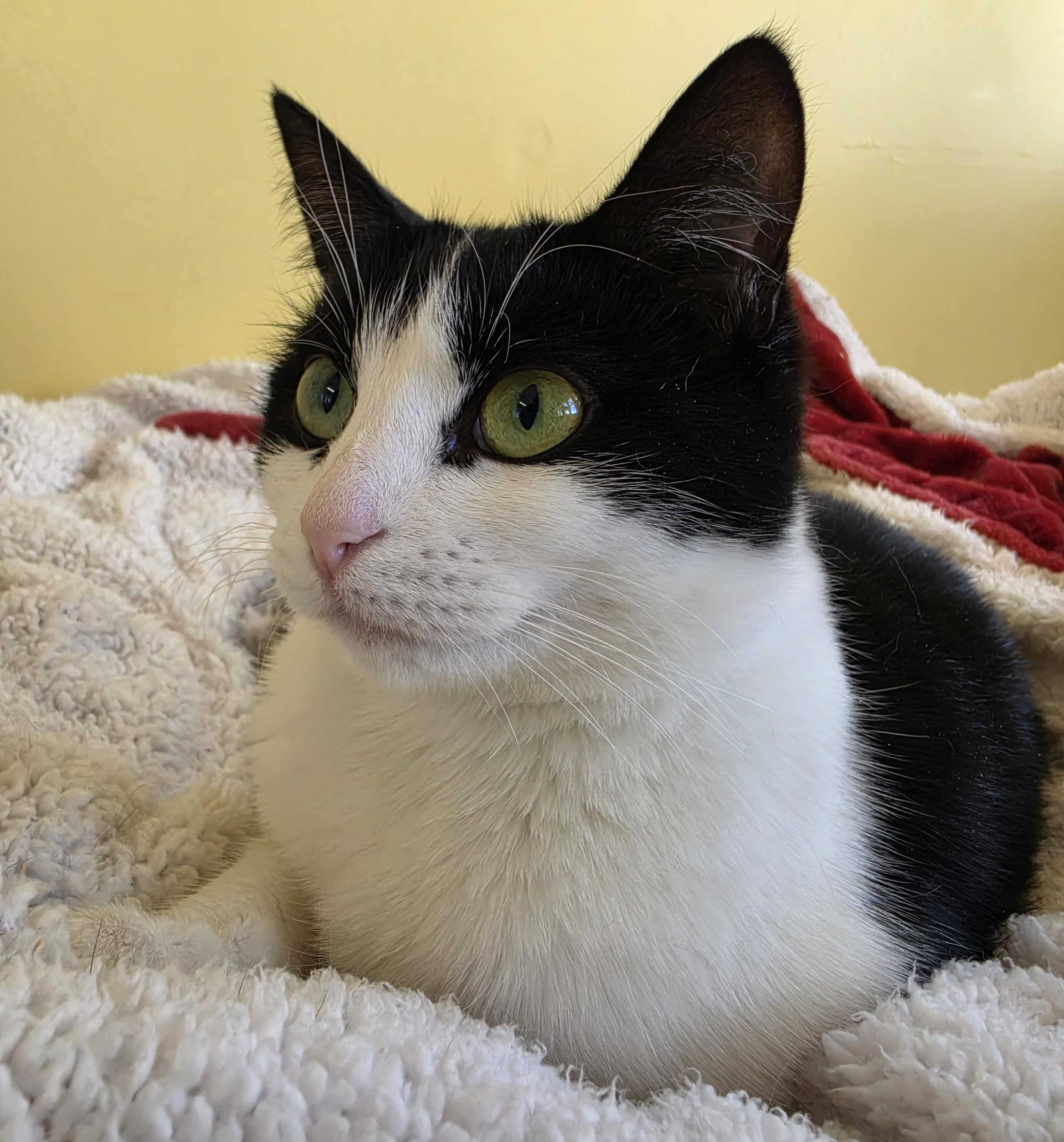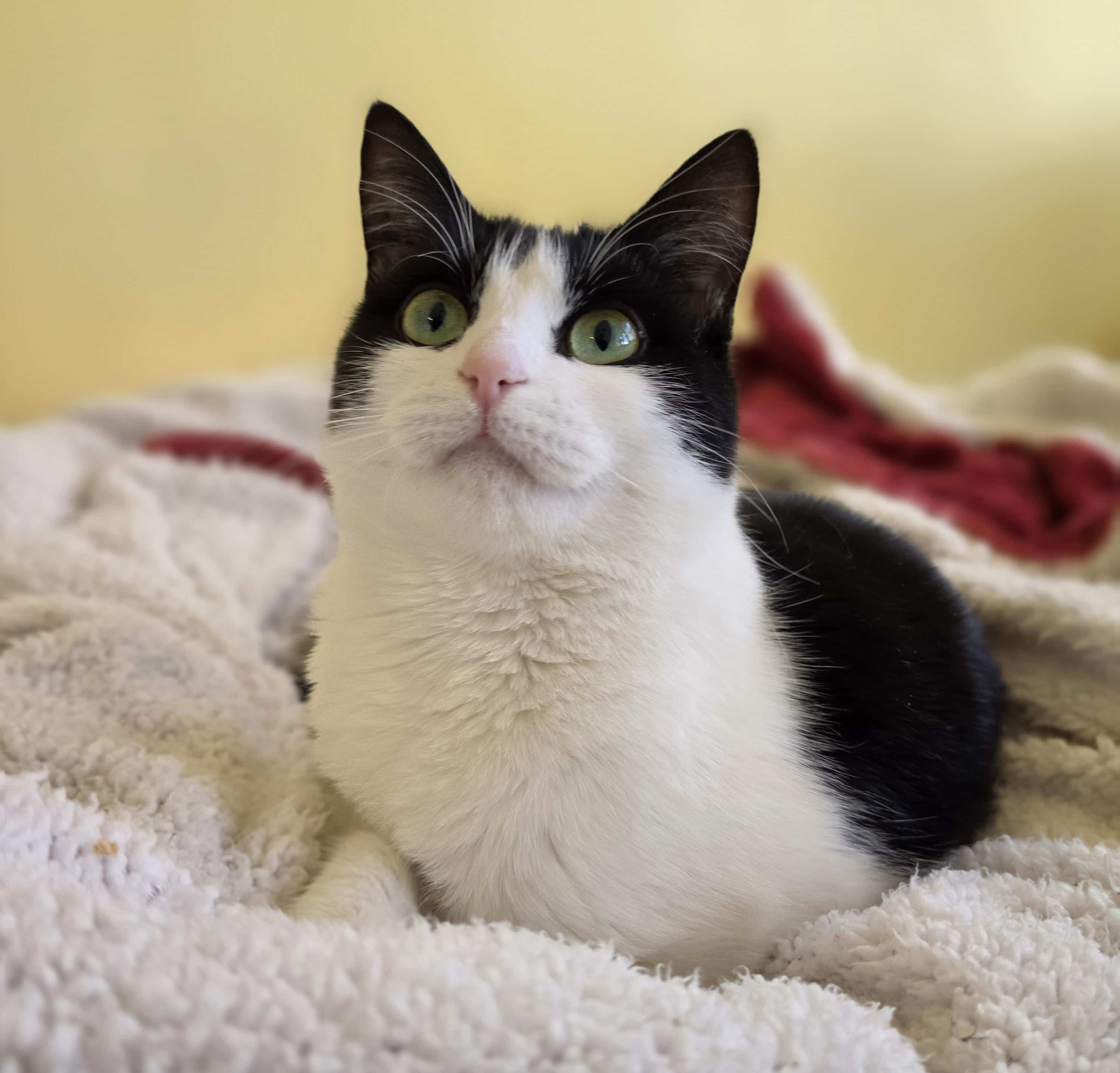 Pixie came into our care as a stray, feeling very unsure of humans and her new surroundings. With patience and support from our cattery staff, she has slowly begun to come out of her shell. Along the way, we discovered that Pixie loves food, playtime, and the company of other cats!