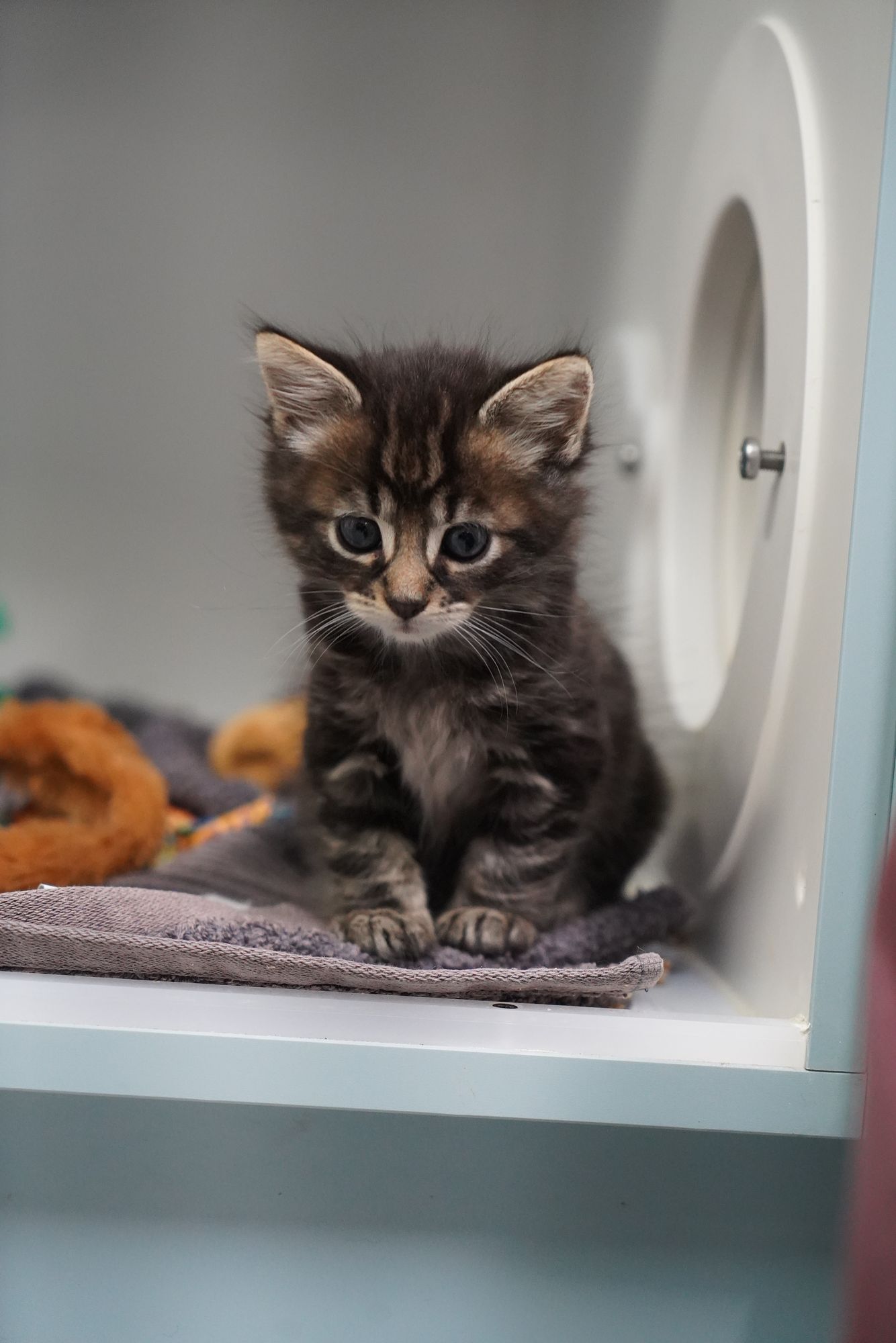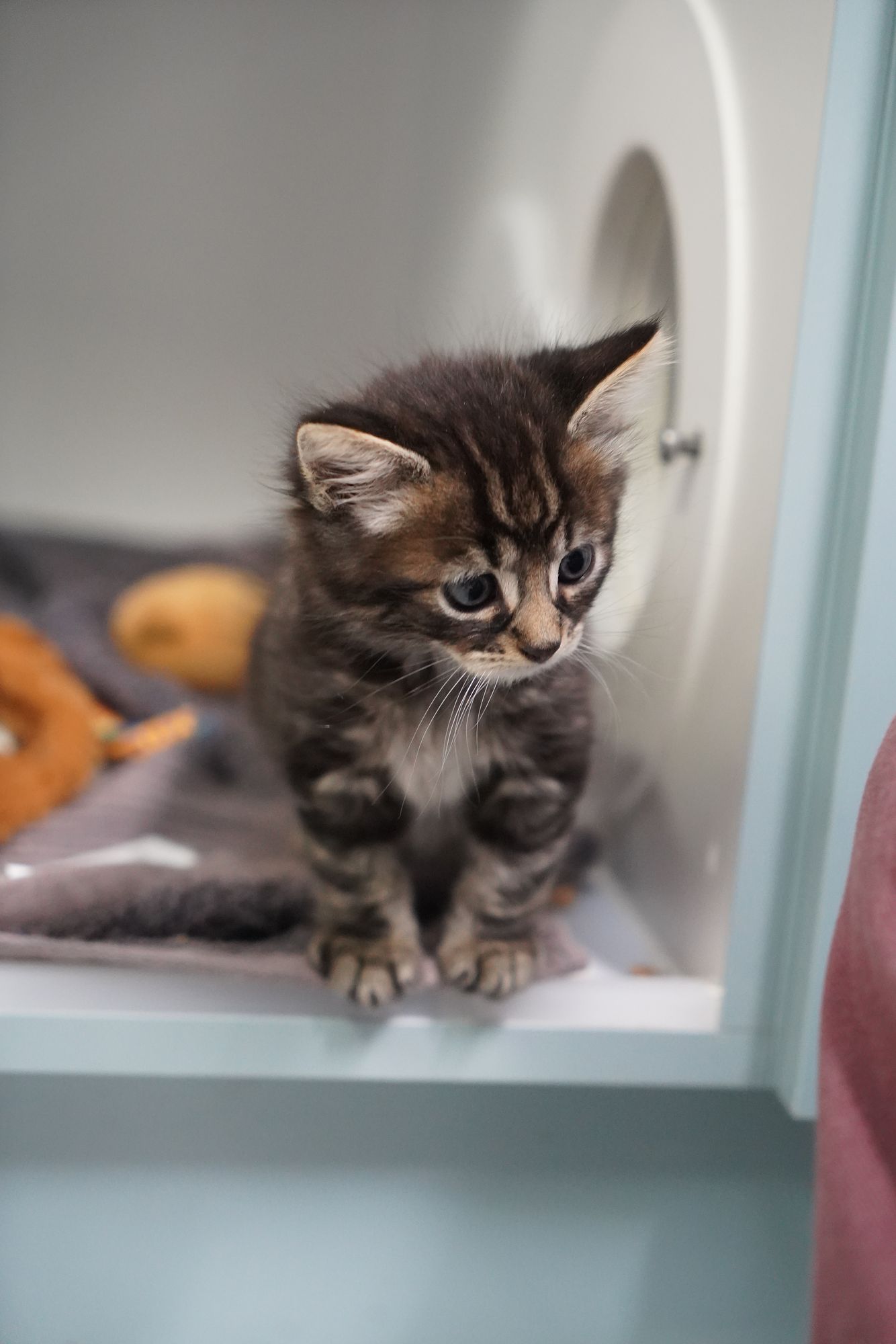 Like most kittens, I have the perfect balance of playfulness and snuggly naps. Whether I’m chasing after toys or curling up for a snooze, my sweet and curious nature shines through in everything I do. I’m a playful kitten who would fit in well with any family ready to give me lots of love and attention. I’m sure to bring joy and energy to my forever home, making me the perfect companion for anyone looking for a fun and affectionate addition.