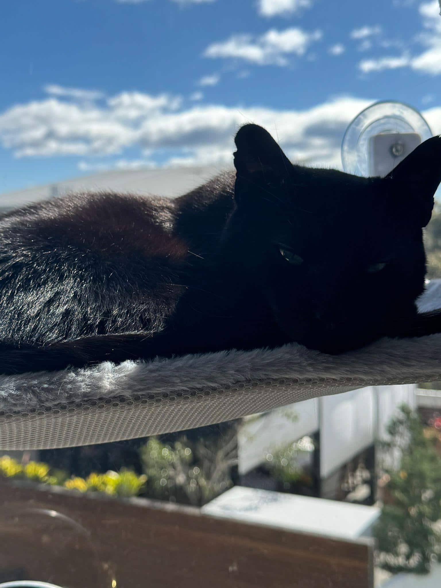 Hi I'm Milo, and I am 8-year-old black cat with a uniquely endearing look — My crossed eyes give me a constant expression of curiosity and charm. While my appearance might bring a smile, I still am a gentle and sensitive soul who thrives in a calm and predictable environment. I am looking for a forever home where I can truly feel safe and understood.