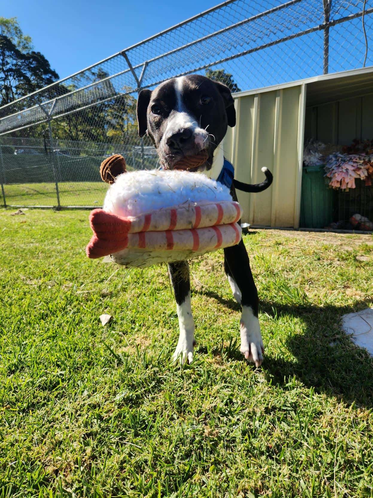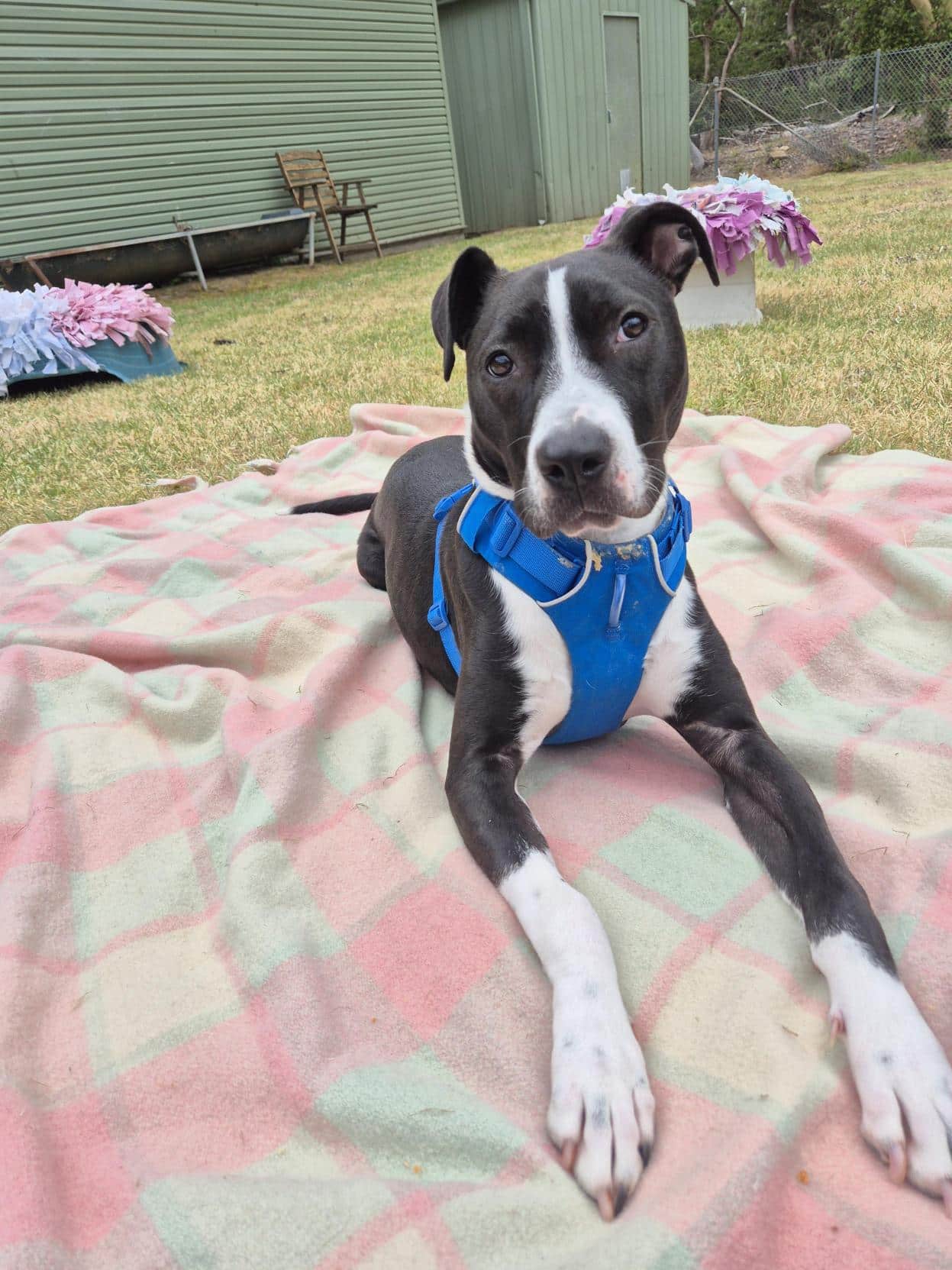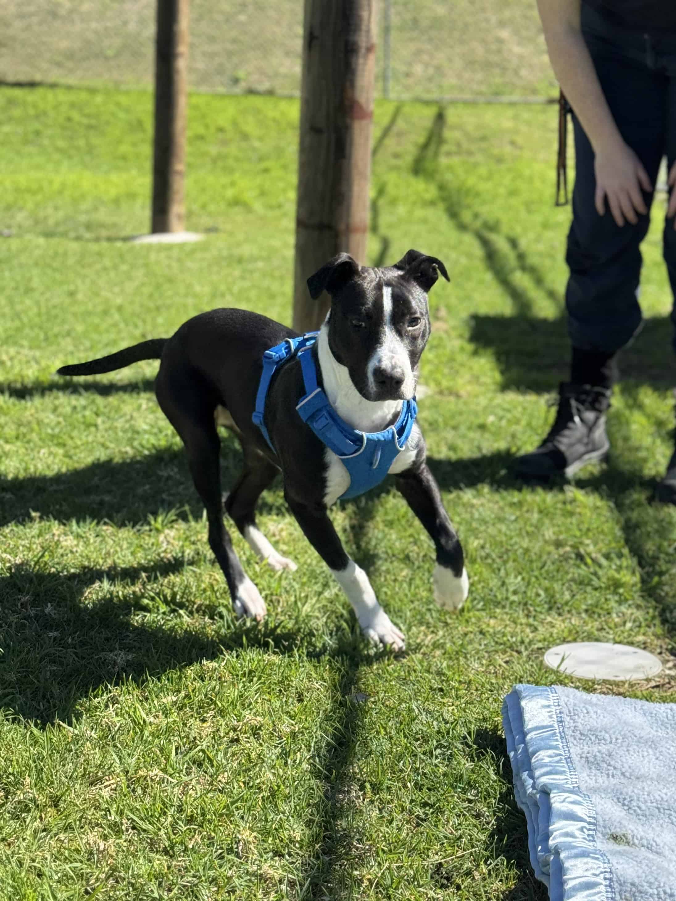 Meet Aria! A 9-month-old Staffy sweetheart with speedy little paws, full-body wiggles, and a heart that shines for gentle humans.