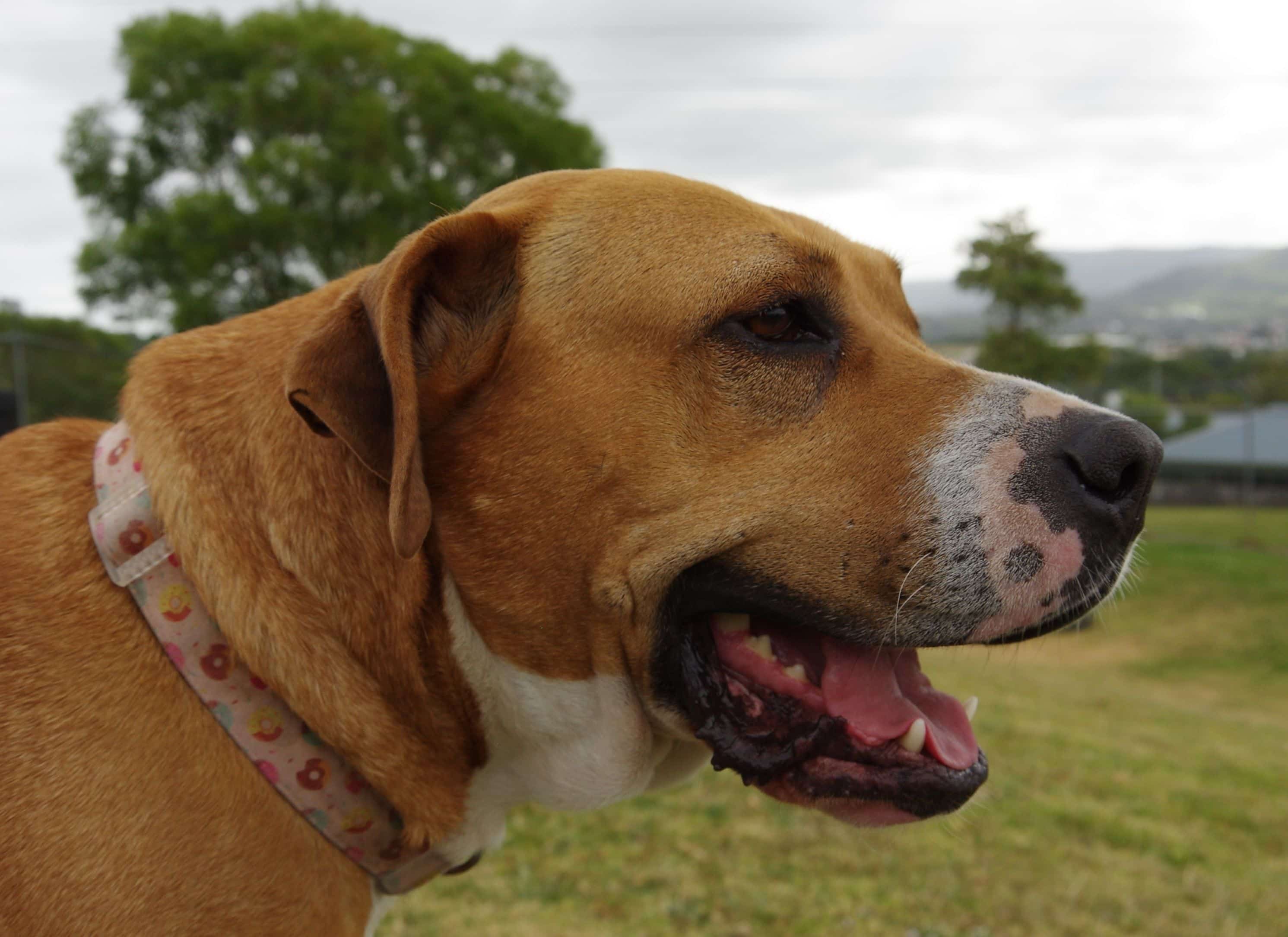 Honey is gentle and friendly but can be a little boisterous in her excitement, especially during play. For that reason, she’s best matched with families with children aged 6 years and older who are confident around large dogs.