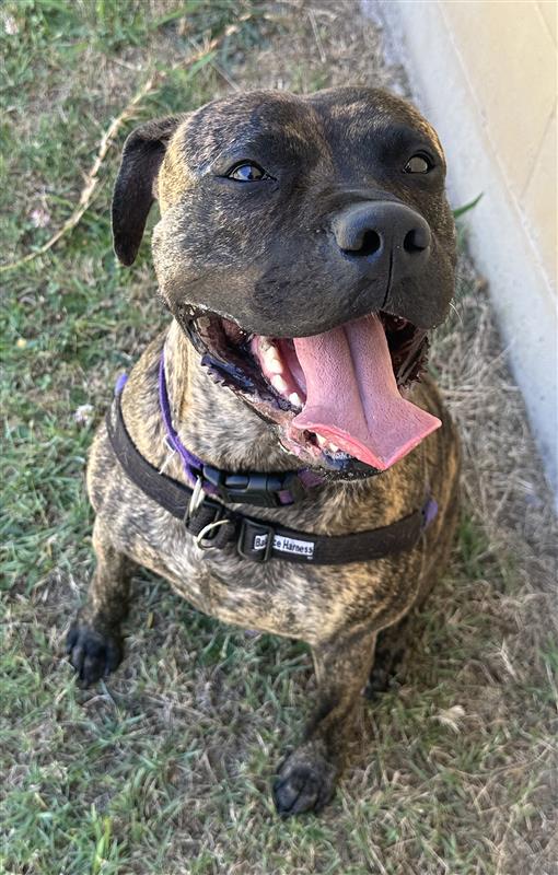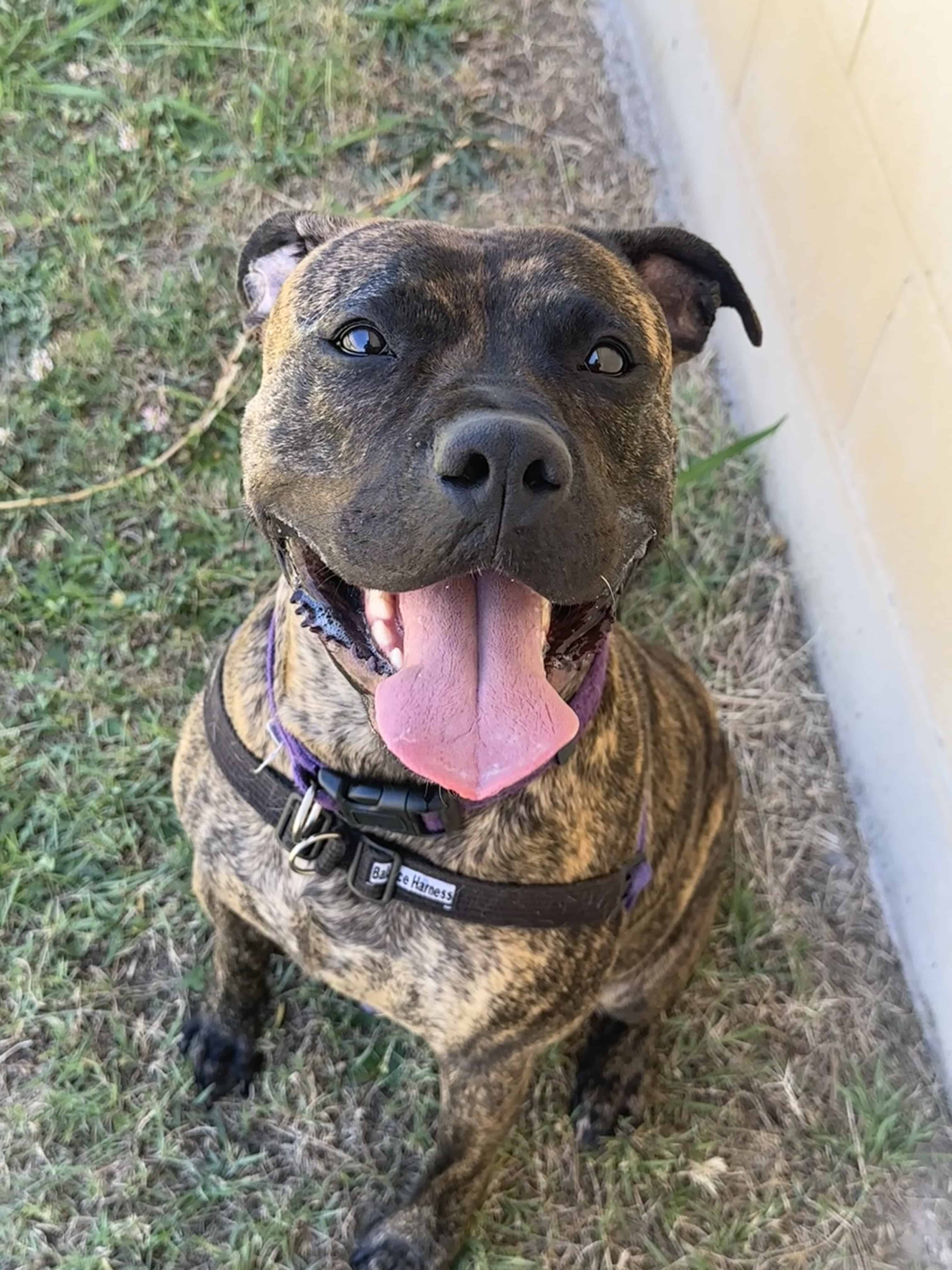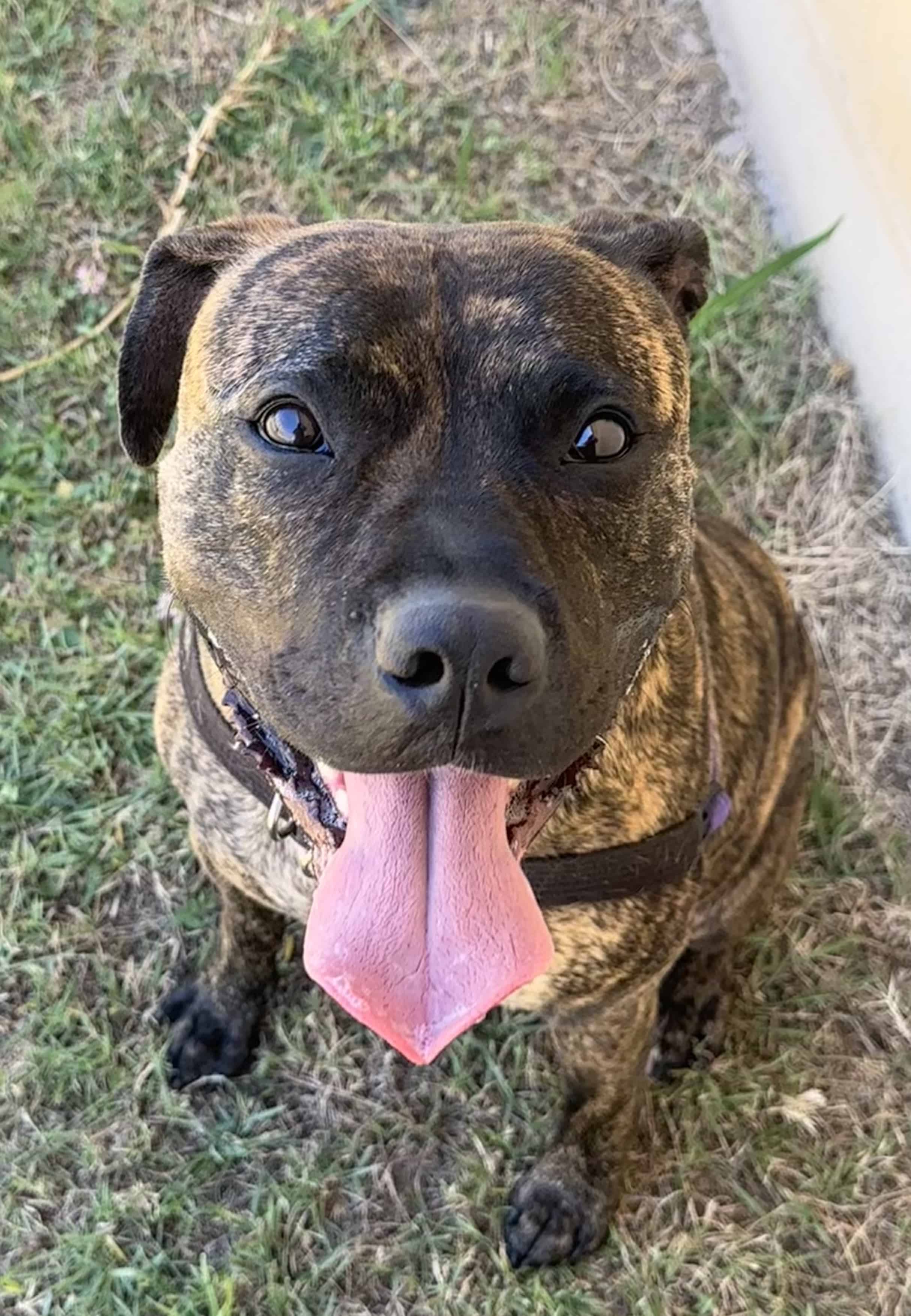Karma is a beautiful 4-year-old American Staffordshire Terrier with a true heart of gold. This happy girl absolutely loves life and brings joy wherever she goes. You’ll often find her snuggled up close to her favourite humans, soaking up affection, or happily racing through the sprinkler on a sunny day.
