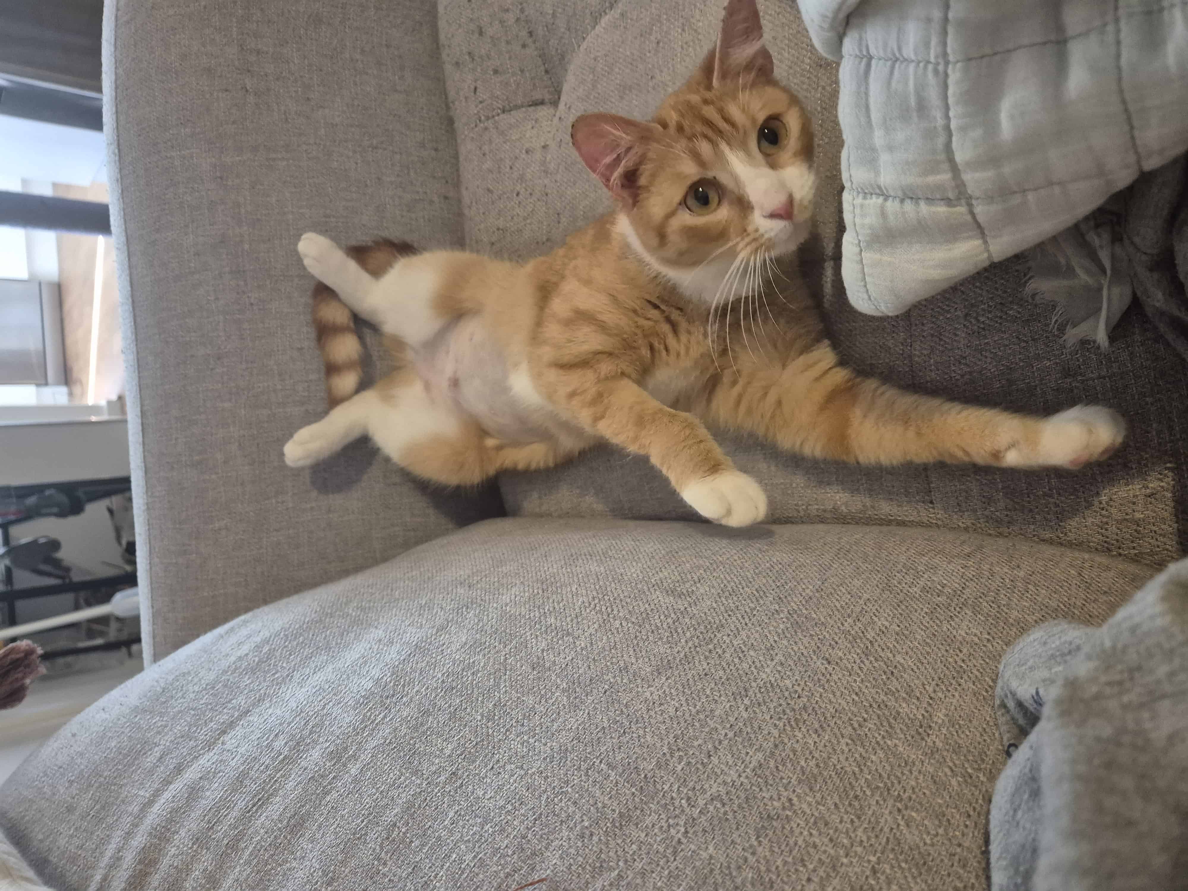 Viola is a beautiful 1-year-old domestic shorthair with striking ginger and white fur. Independent and full of curiosity, she enjoys exploring her surroundings at her own pace and engaging in quiet play.
