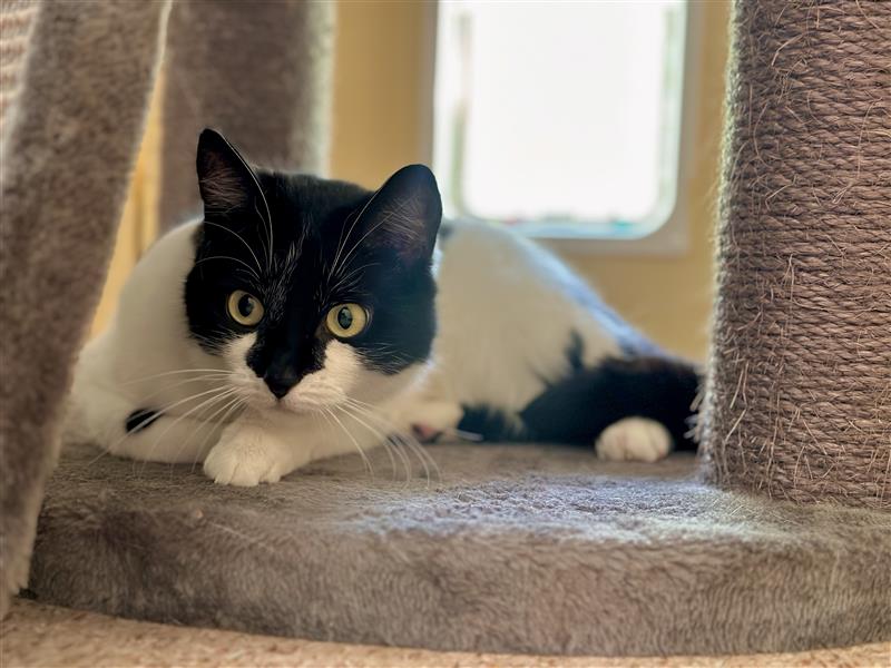 I can startle easily, so a calm/quiet household would make me happiest. I’m looking for a place with no children under 12 and where I can be the only pet, so I don’t have to share my safe spaces or your attention. Once I settle in, I’m incredibly affectionate, and I really enjoy lap cuddles when I’ve chosen you as my person.