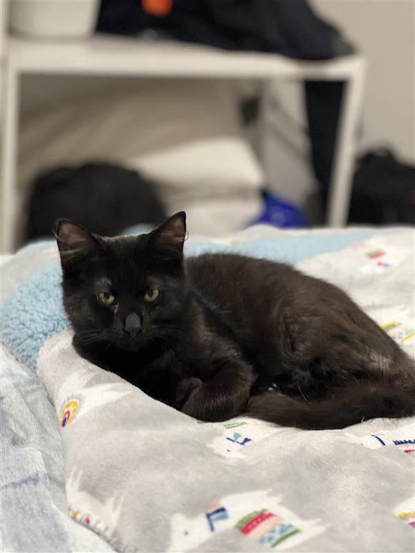 Pugsley is a handsome black kitten with soft fur and a calm, gentle nature. He can be a little shy at first, but once he feels comfortable, he shows his sweet and affectionate side. Pugsley enjoys quiet playtime, cozy naps, and being near people he trusts. He’s a sensitive boy who appreciates a calm environment where he can relax and feel safe.
