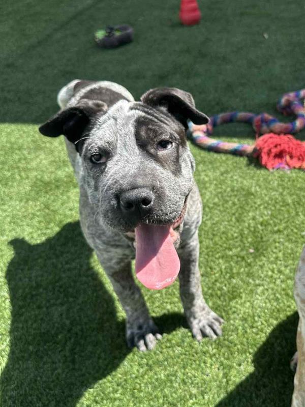 Hi, I'm Jersey! I'm a female Australian Cattle Dog X puppy. I'm still young, which means I’m curious, athletic, and full of personality. My favourite activities are exploring, learning new tricks, and playing with my toys. So, I'm looking for an active home where I can get plenty of exercise and lots of affection. I’m eager to please and enjoy positive training with treats and praise. I thrive on routine and daily adventures. A fenced yard and a predictable schedule would help me settle in beautifully. I enjoy meeting new people and I do well with gentle introductions to other dogs. I promise lots of loyalty, energy, and goofy moments as I grow. With patient guidance, I’ll become a confident, well-behaved companion who loves to be by your side. If you’re ready for a bright, devoted little teammate who will keep you on your toes and melt your heart, I’d love to meet you. Let’s start our adventure together.