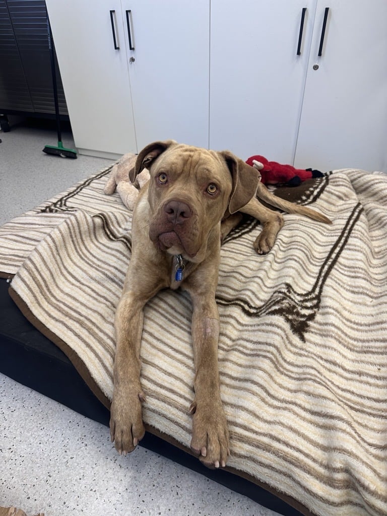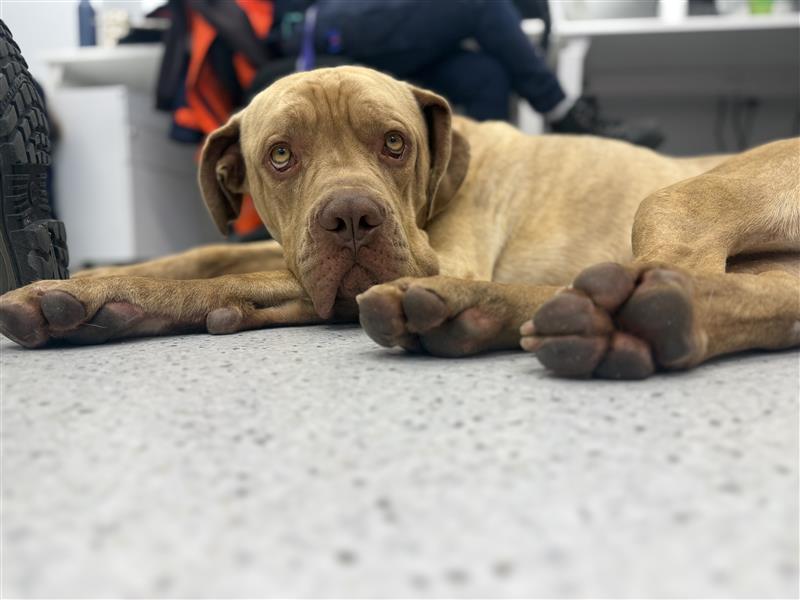 I’m a lovable goofball who sometimes forgets just how big I am. I act like a big puppy most of the time, so I’ll need someone patient to help guide me and keep teaching me good manners. I’m also a cuddle bug who loves a good snuggle and never says no to a comfy spot for a nap. One of my favourite things is snoozing in the office while everyone works—though fair warning, I do leave drool everywhere!
