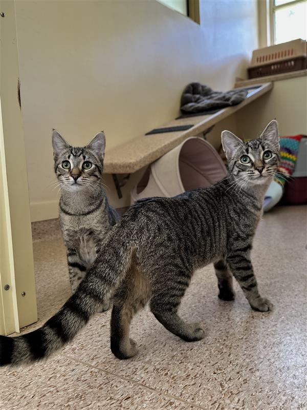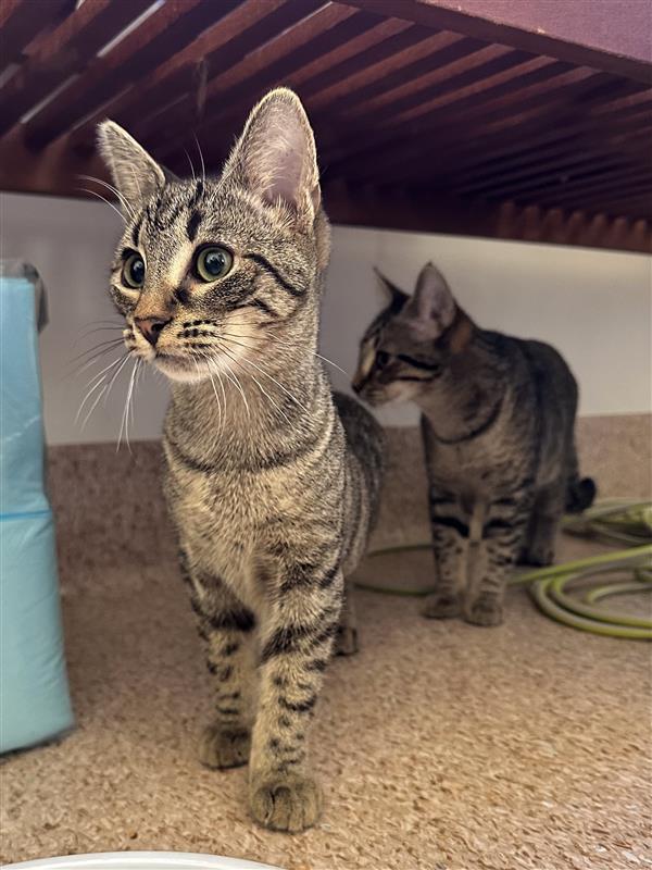 My sister Latte and I are sweet, playful young kittens with curious minds and lots of kitten energy, once we feel safe. When we first arrive in a new home, we can be a little shy, and you might find us tucked away together while we settle in. Having each other gives us confidence, and with a little time, our fun personalities really start to shine.