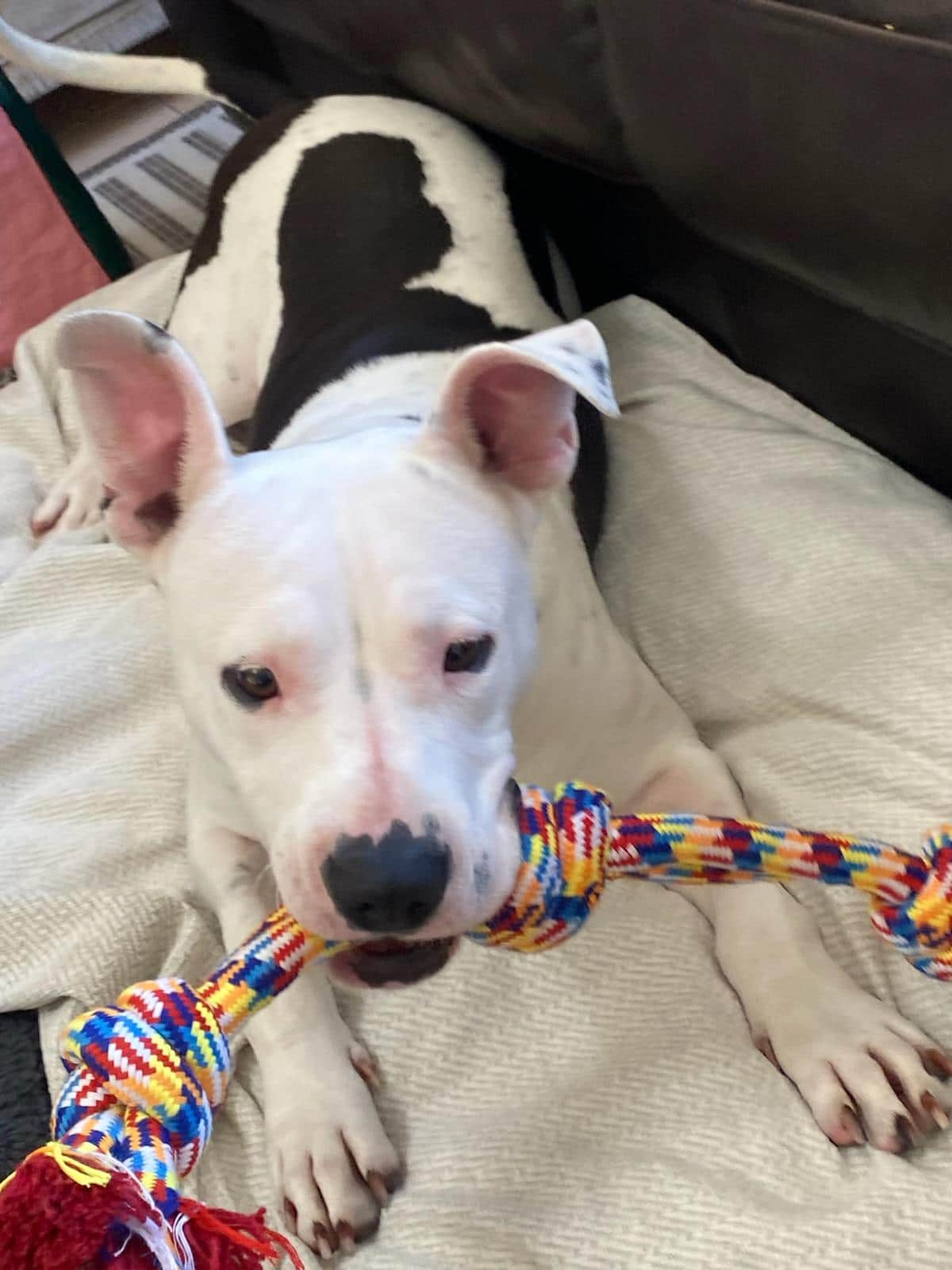 Hi, I’m Moo Moo, a 2-year-old American Staffy with a squishy face, a big heart, and just the right amount of sass. I’m happiest hanging out with my people — whether that’s lazy Sundays on the couch or soaking up the sun outside.