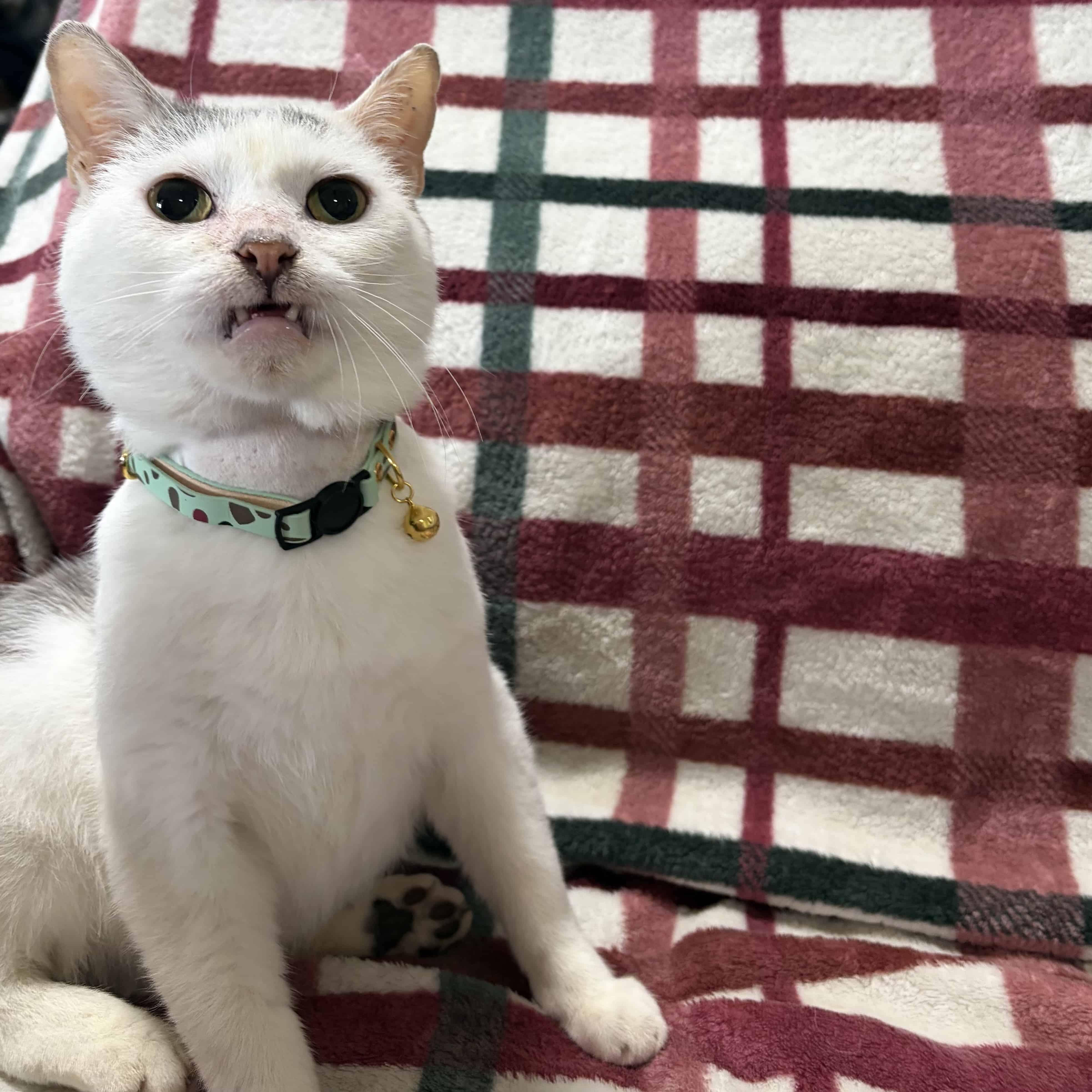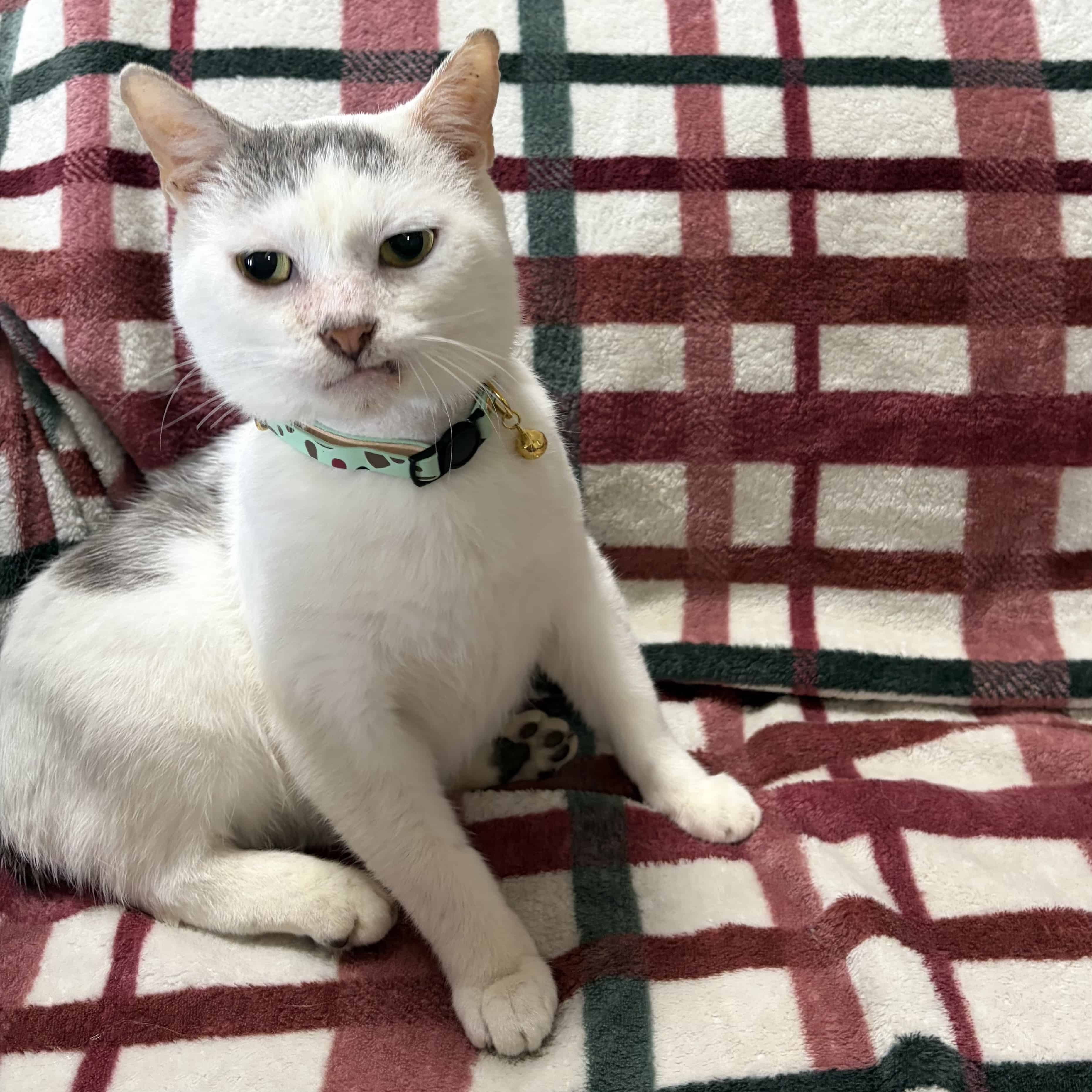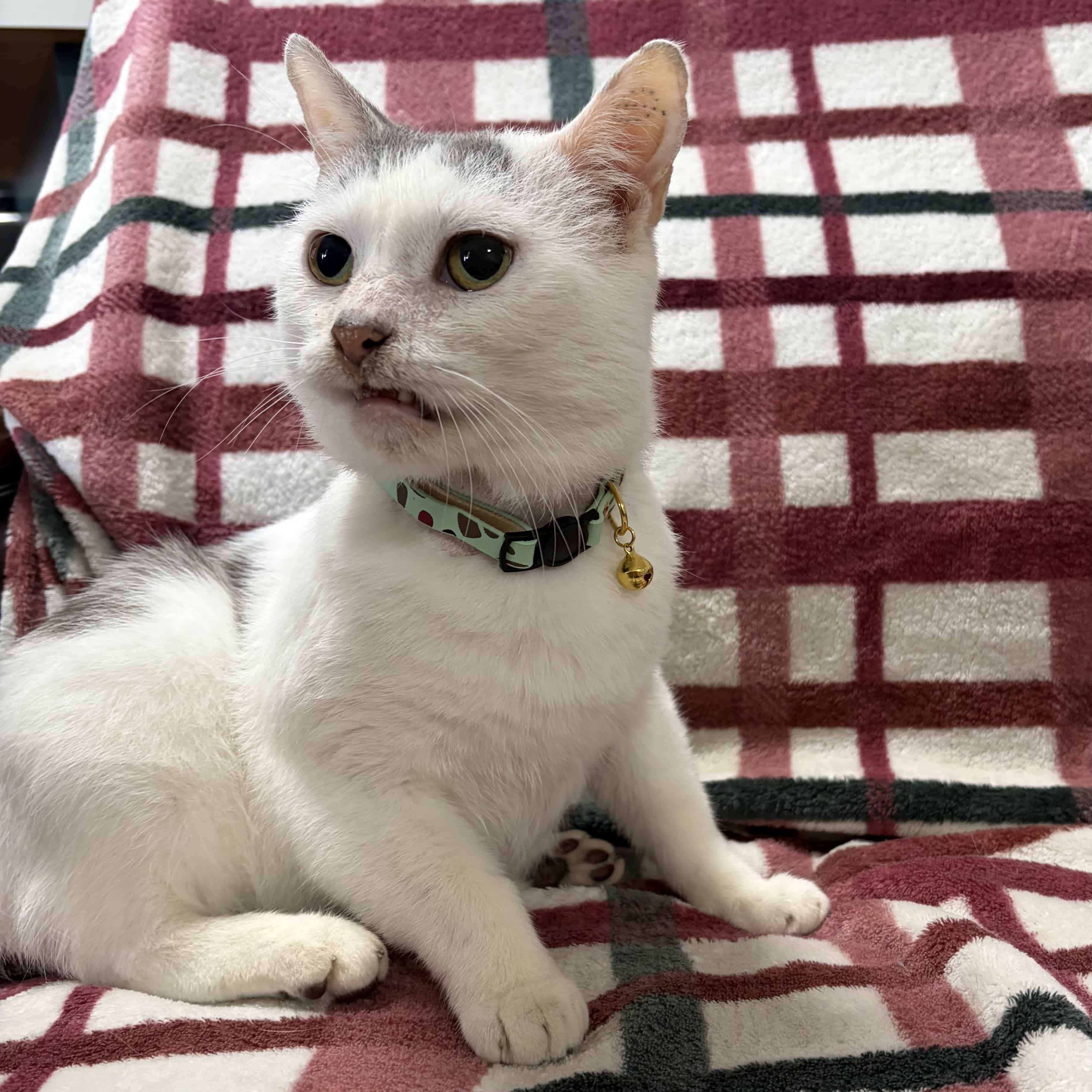 Hi, I’m Jellybean — though my friends call me Jelly or Jellycat. I’m an 11-month-old white and tabby boy who was a bit timid when I first came in, but foster care has helped me come right out of my shell. I’ve learned how to play with toys, chase balls, and I love doing morning zoomies. If I’m feeling playful, I’ll call out to let you know it’s time to come play, and I enjoy gently engaging with other animals too.