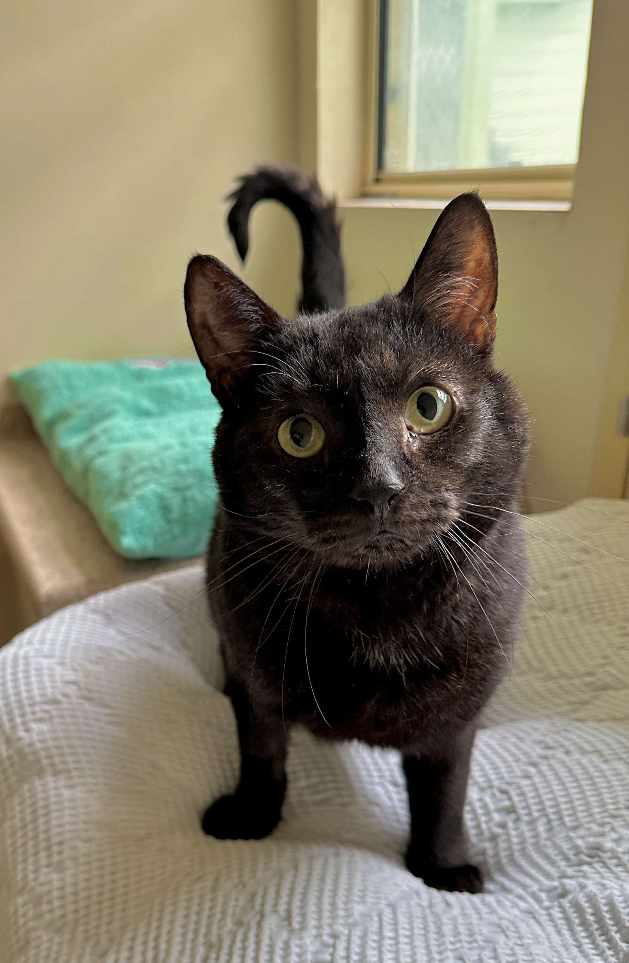 I really enjoy enrichment, puzzle toys, interactive play, and anything that keeps my mind active makes me happy. I’m a nice mix of independent and affectionate: I’m happy to do my own thing, but when I’m feeling social, I’ll be right by your side (or at your heels!) keeping you company.