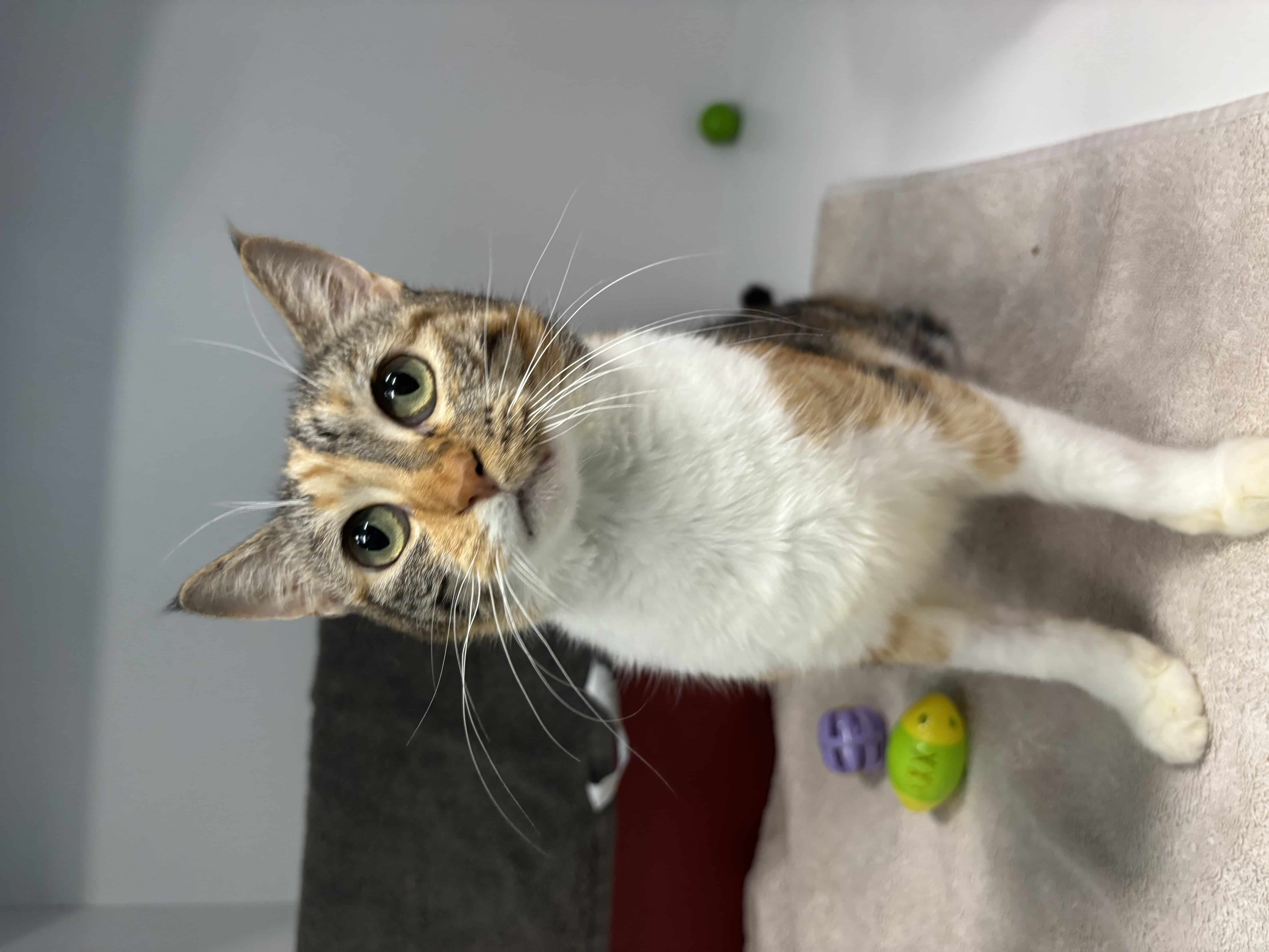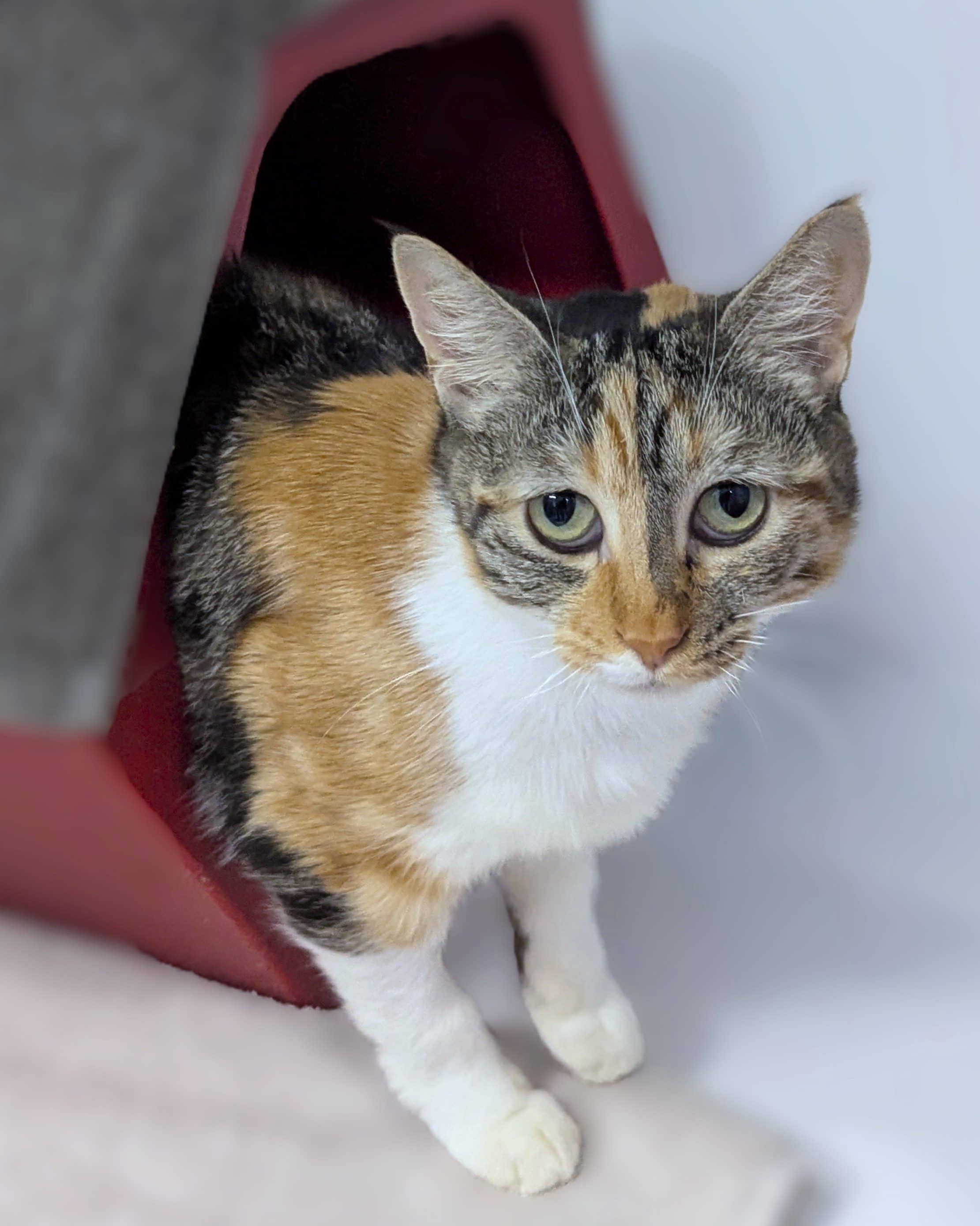 I’m a sweet three-legged girl with a gentle heart. I can be a little shy when we first meet, and I may need some time to watch from a safe, cozy spot while I get comfortable. Once I know I can trust you, though, I turn into a very loving companion.