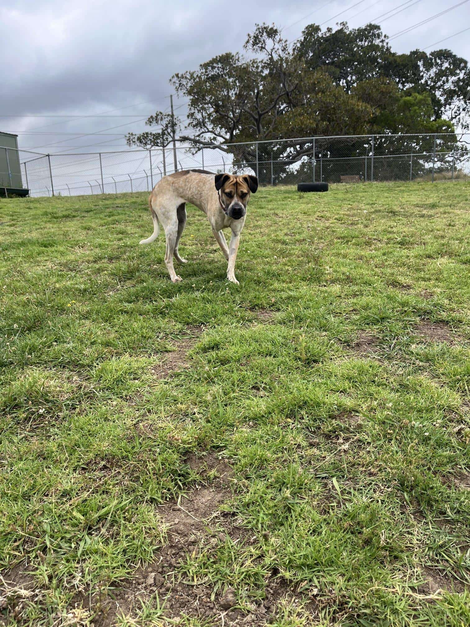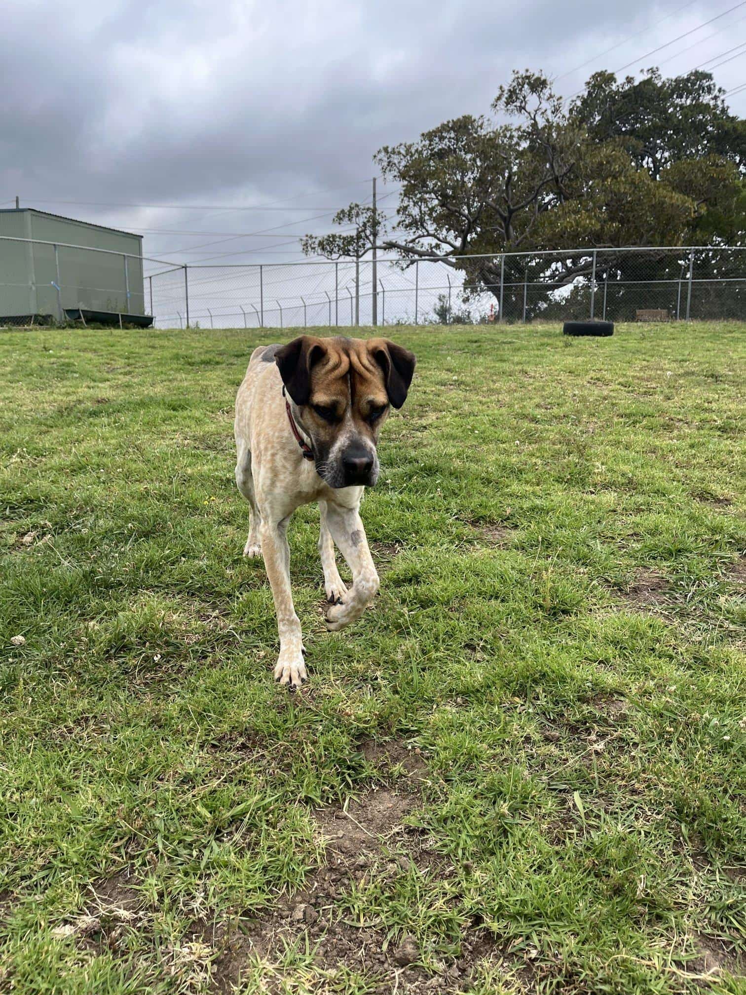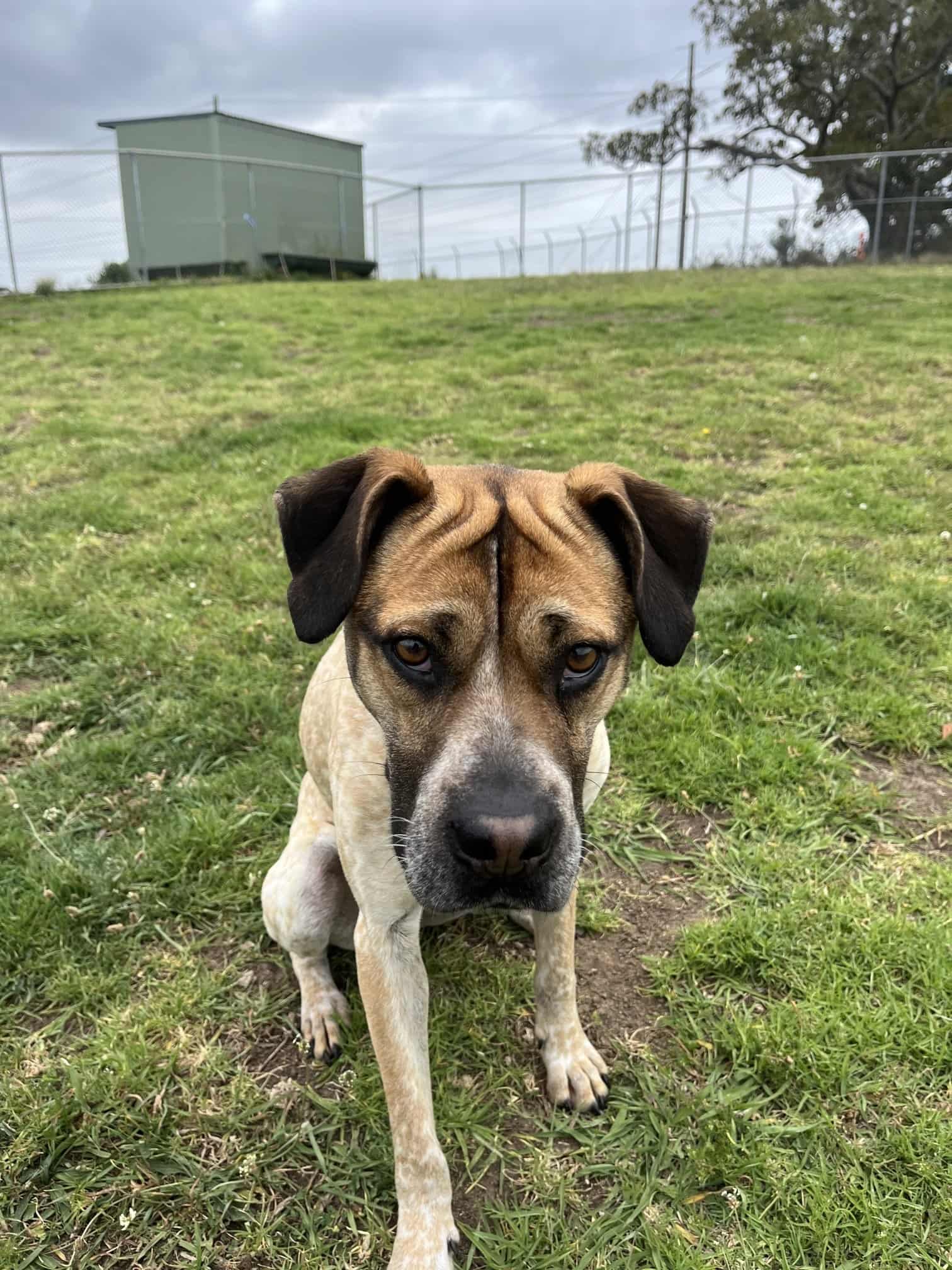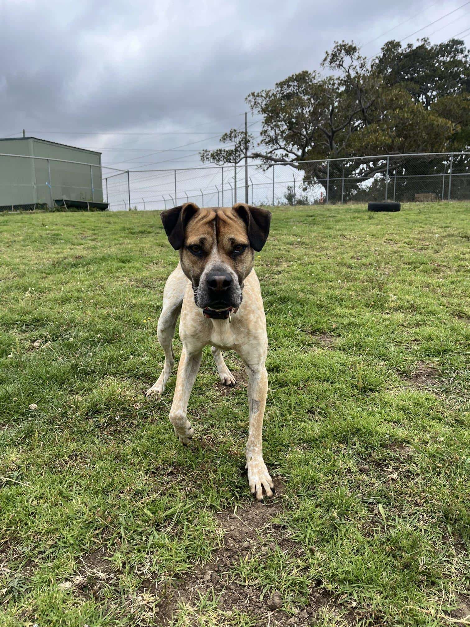 Hi, I’m Koda, a female Mastiff cross. I’m a gentle giant—calm, loyal, and affectionate with my people. I’d love a home with someone who works average hours; I thrive on a predictable routine and a comfy spot to snooze after our adventures. Energy level: Moderate. I’m happiest with steady walks, relaxed play, and lots of cuddles. Best with children aged 12 years and up—I’ll greet respectful teens with a calm, steady vibe. Training and behavior needs: I adore daily opportunities to learn about life and meet other dogs. Mental enrichment keeps me sharp and happy. Compatibility with other dogs: I can be selective. I do best with careful introductions and aren’t keen on off-leash dog parks. Compatibility with other pets: No known history of issues, so I’m adaptable in the right home with supervision. If you’re seeking a devoted, needful friend who loves gentle affection, enrichment, and a steady routine, I’m your girl. I can’t wait to meet you and become part of a loving family. Please reach out to learn more and arrange a meet-and-greet.