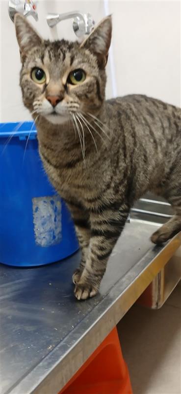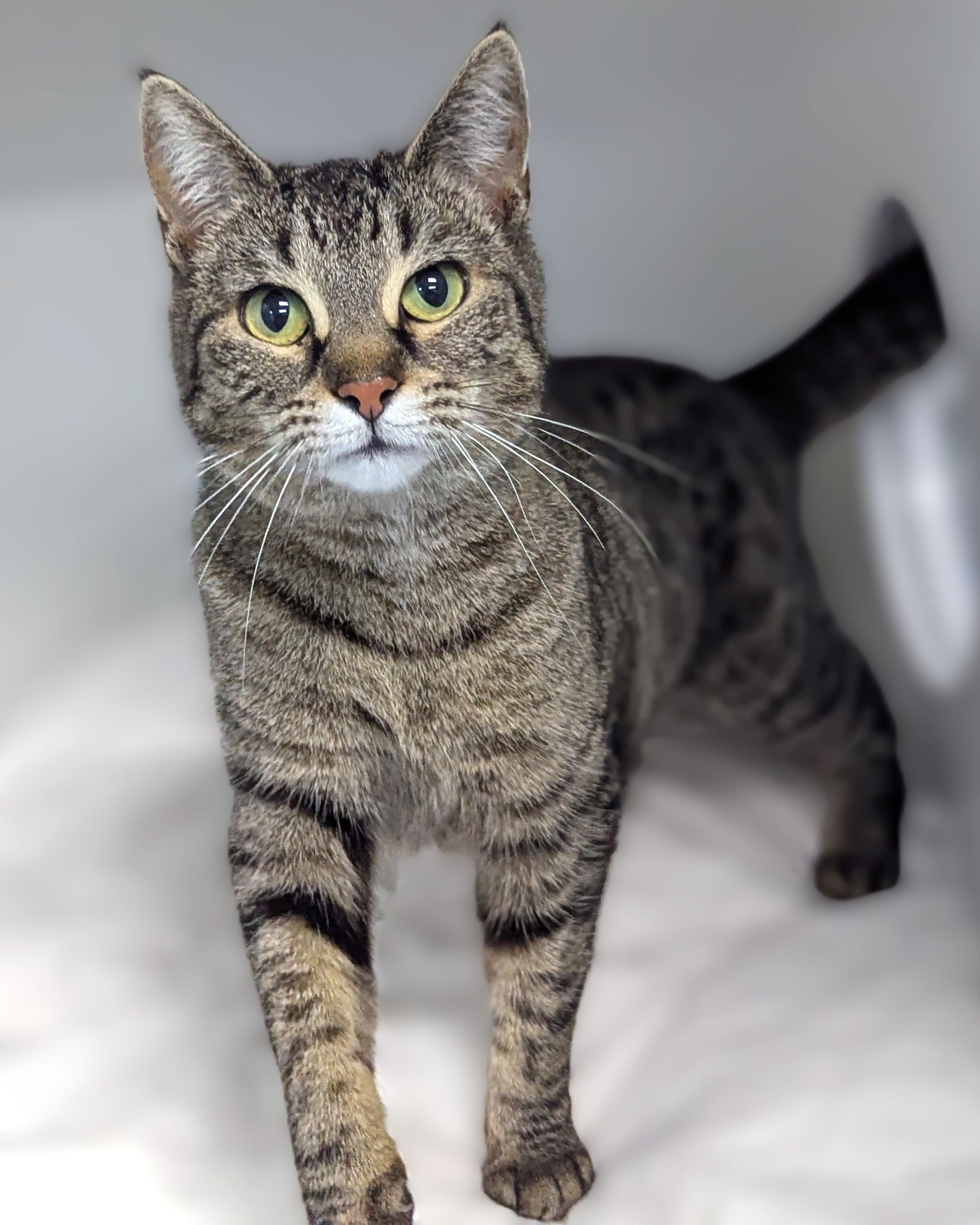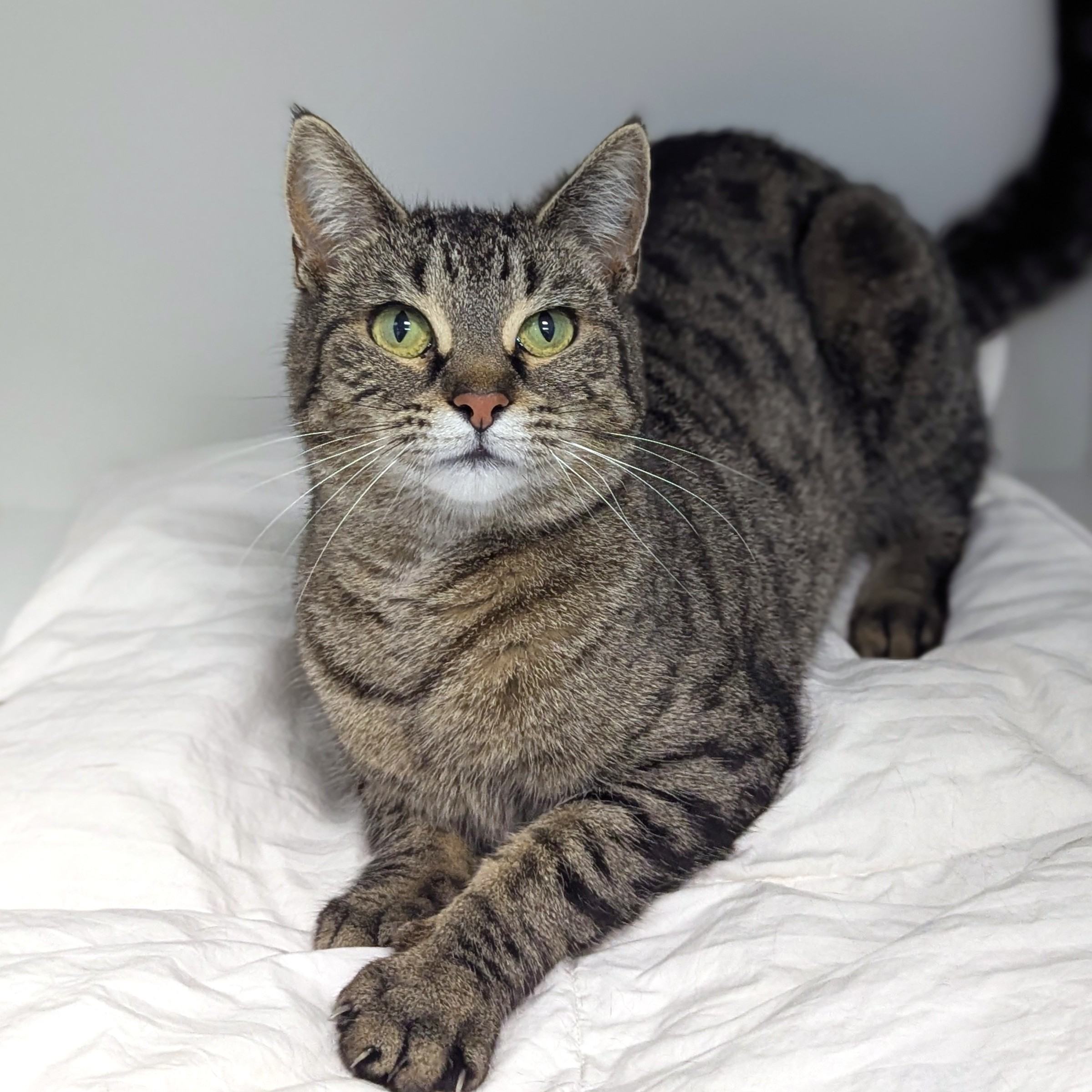 I’m independent but crave companionship, especially after a cozy nap. I enjoy bird-watching from a window, exploring new textures, and scratching posts. I’m litter trained and know how to use a scratching post. I’d do well in a calm, cat-friendly home with a routine and some enrichment.