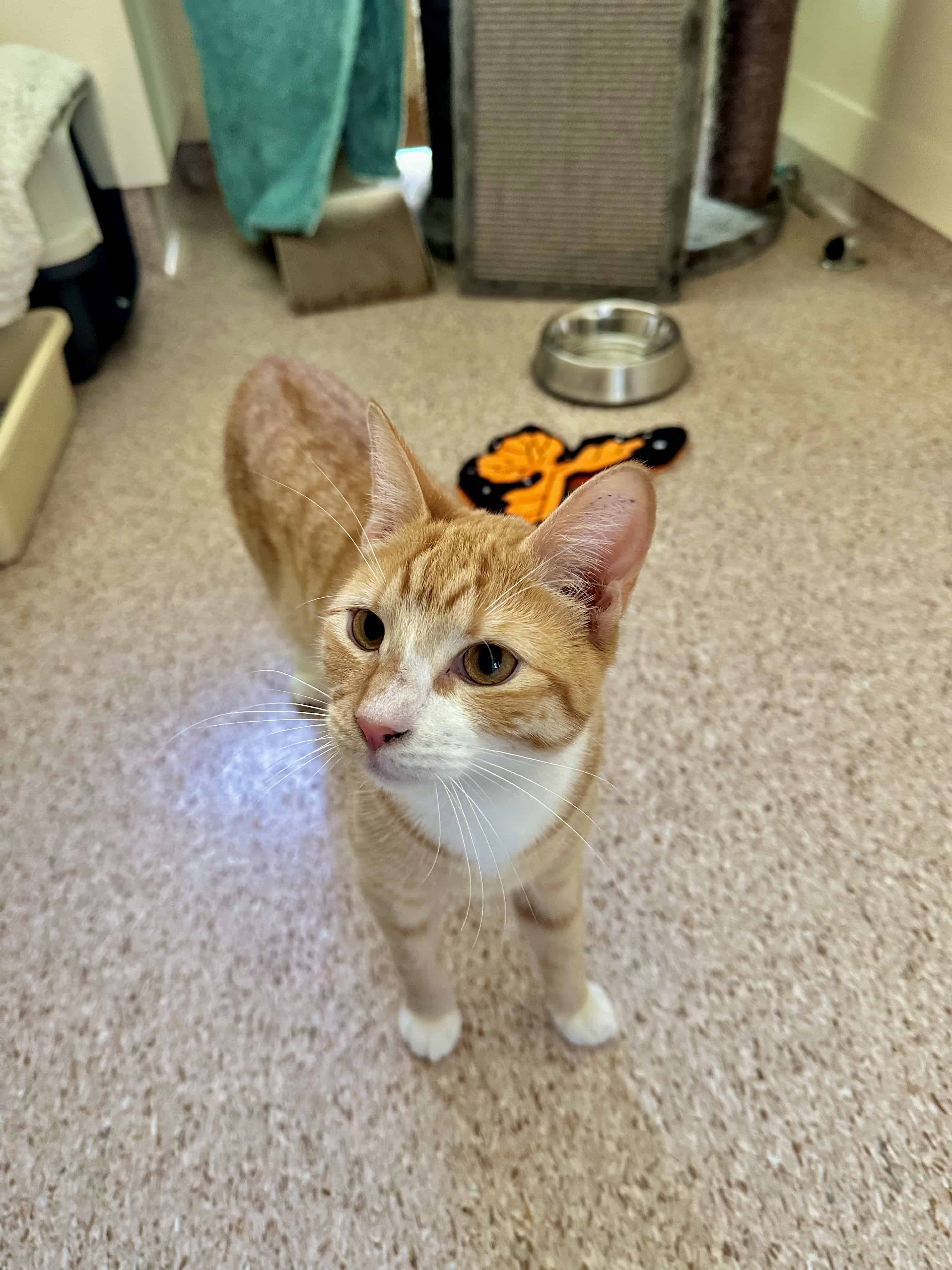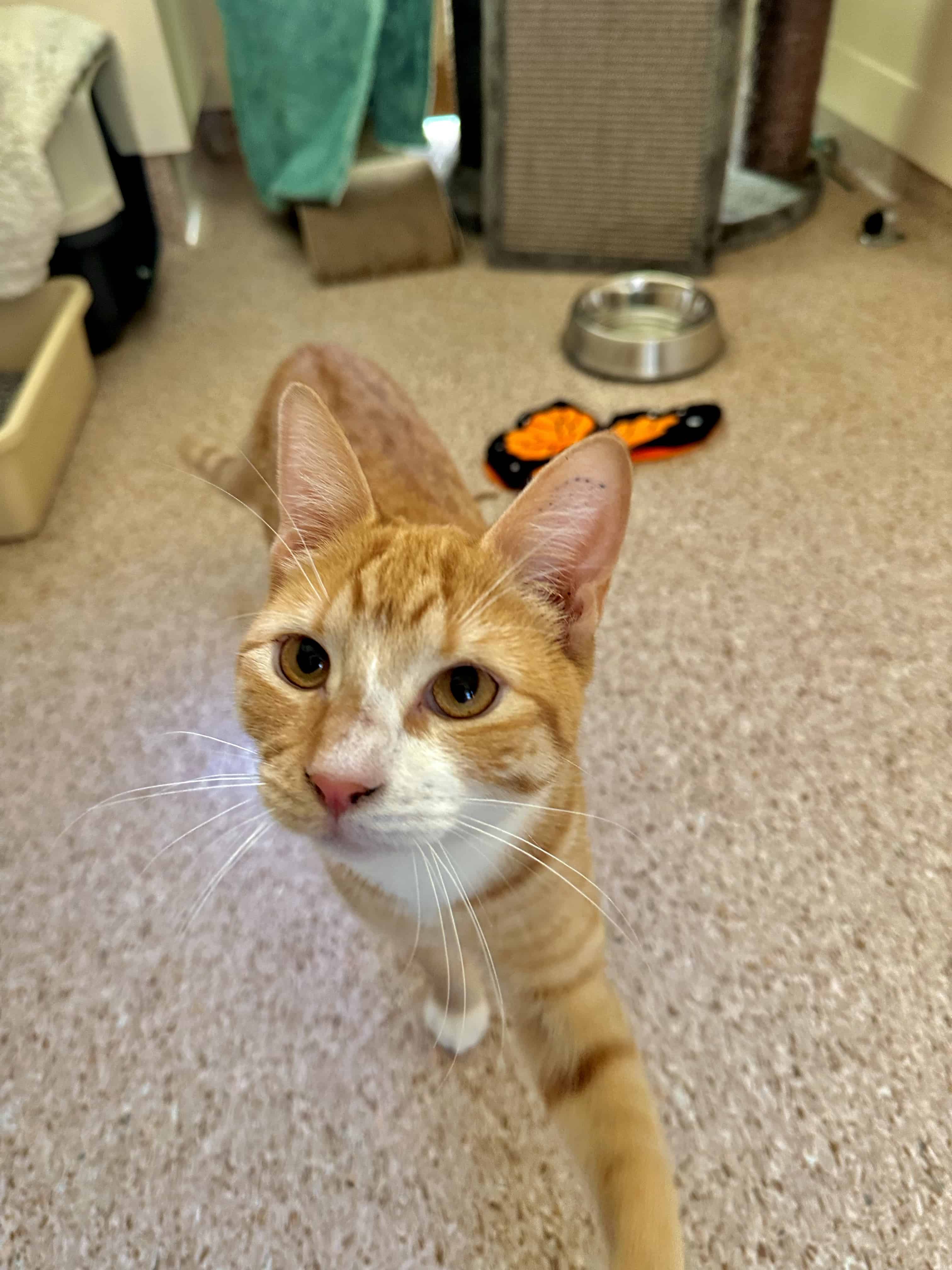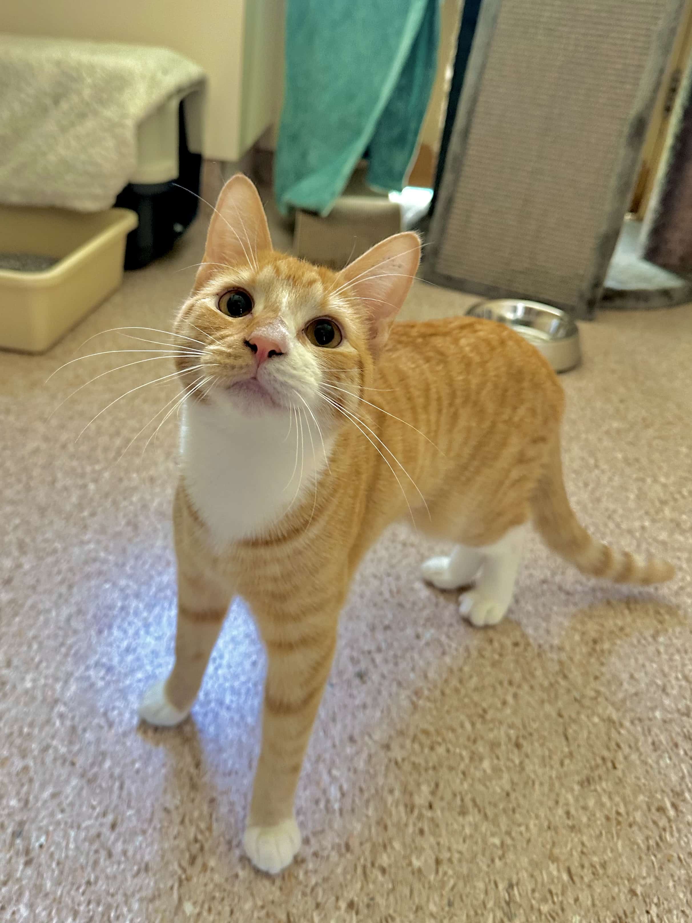 It’s very nice to meet you. I’m a sweet young boy who’s looking for a calm, understanding home where I can be given the space and patience I need to settle in and build a trusting relationship. I can be a nervous boy, so at first, I’ll need a safe space to call my own, somewhere with all my essentials, plus places to climb, hide, and observe the world while I get comfortable.