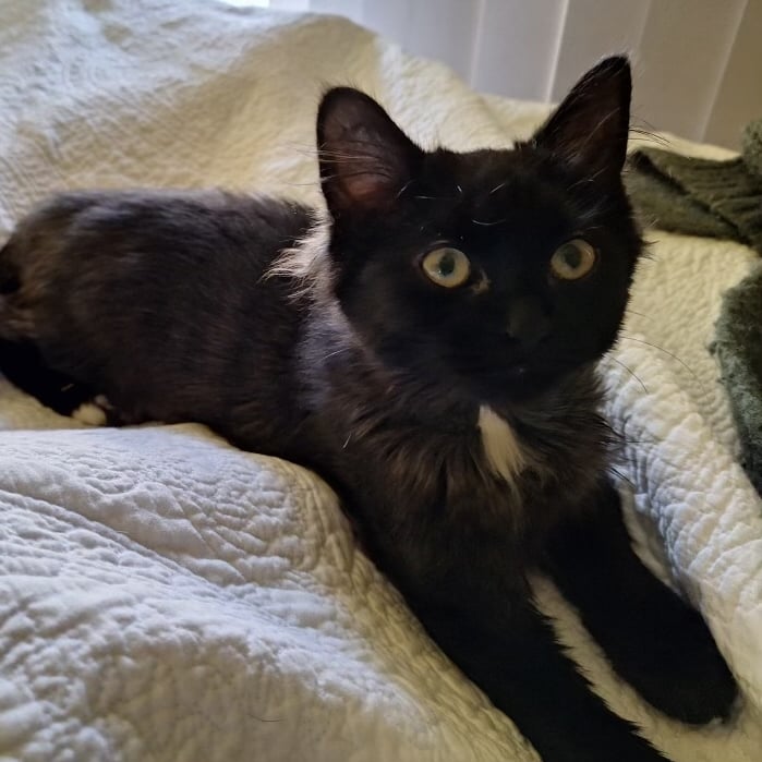 I’m a 3-month-old black and white kitten with a big love for playtime and all the fun things a growing kitten should enjoy. I’m curious, cheeky, and full of kitten energy, and I’m currently growing well and feeling good. I might move a little differently to other kittens, but that doesn’t slow me down from enjoying toys, naps, and spending time with my people.