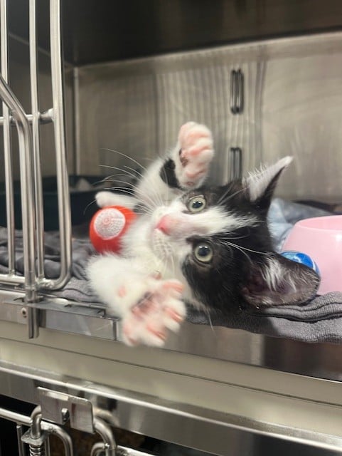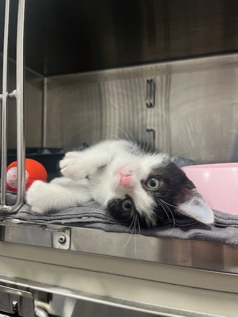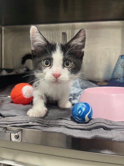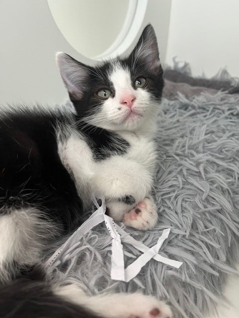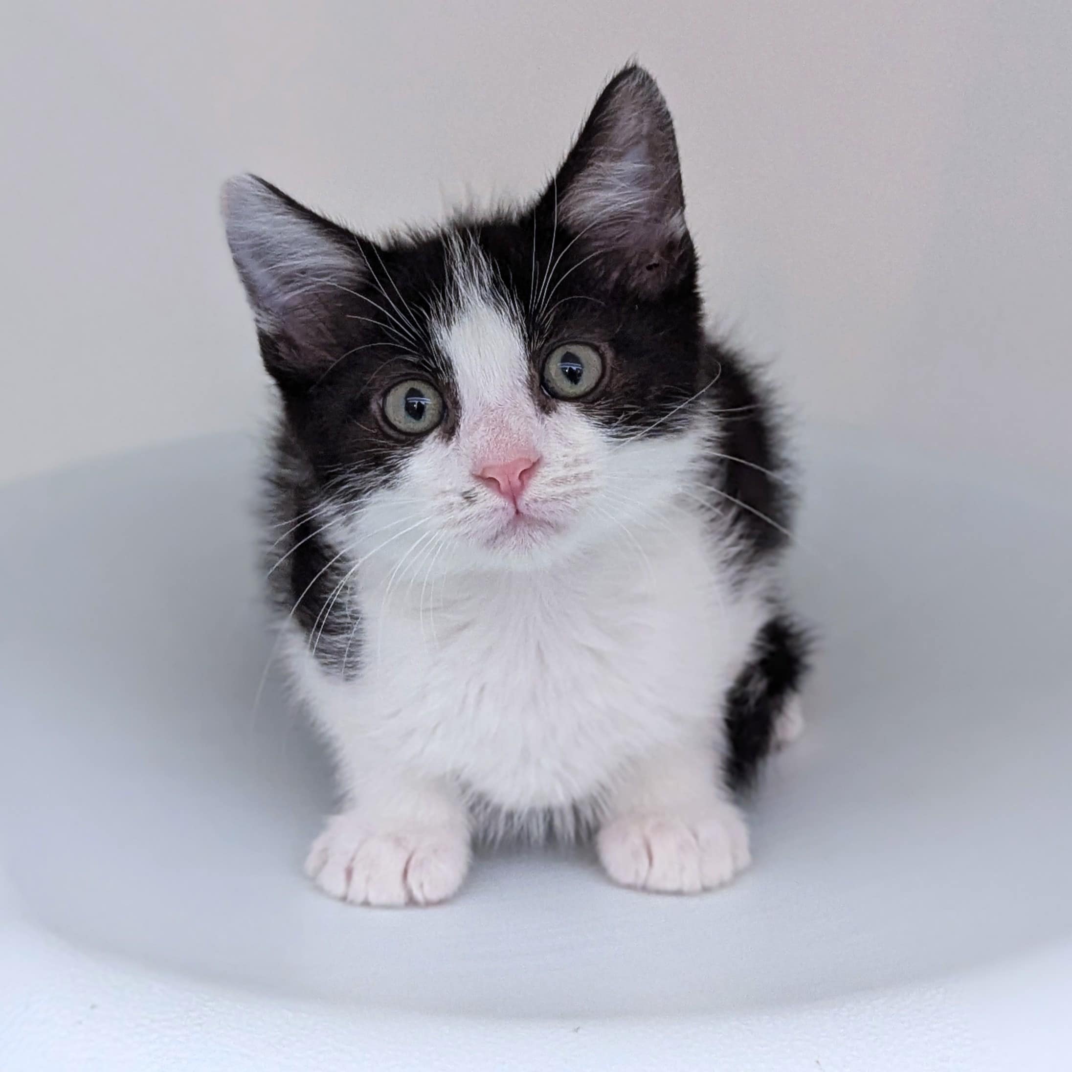 Hi, I'm Felix. I'm a male Domestic Short Hair kitten. Age: 2 months. I’m an average-energy furball who loves both playtime and snuggles. I enjoy exploring, batting at dangling toys, and curling up in a sunny spot for a nap. I’m learning litter training and good manners, and I’m eager to grow into a loving, curious companion with a patient family. I’d thrive in a calm, affectionate home with adults and gentle kids who understand kittens need breaks and routine. I’m friendly with new people and I’d be happy with a furry friend or be your playful little sidekick. I’m ready for a forever home—vaccines and vet visits included. If you’re looking for a pint-sized sweetheart who will shower you with purrs, whisker kisses, and endless curiosity, please consider adopting me, Felix. I can’t wait to meet you and start our joyful, whisker-filled adventures together. Best with children: I’m good with gentle kids.