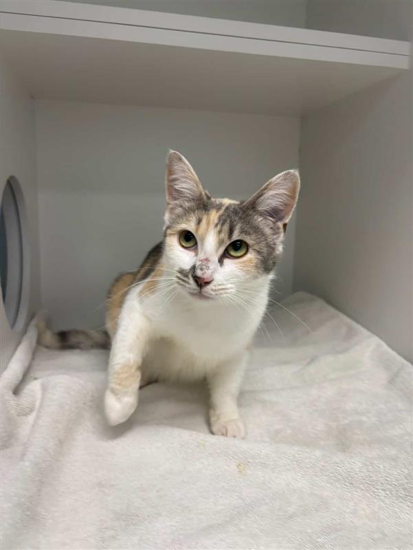 Hi, I’m Bluebell! I’m a 1-year-old Domestic Short Hair who can be a little shy and fearful at first. New people, new places, and lots of noise can feel overwhelming, so I like to take my time to settle in and figure out what’s safe. Once I feel comfortable, though, I love giving gentle head bunts and being a sweet, quiet companion. I really enjoy calm moments with someone I trust and can be a loving friend once I know you.