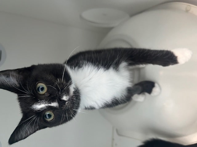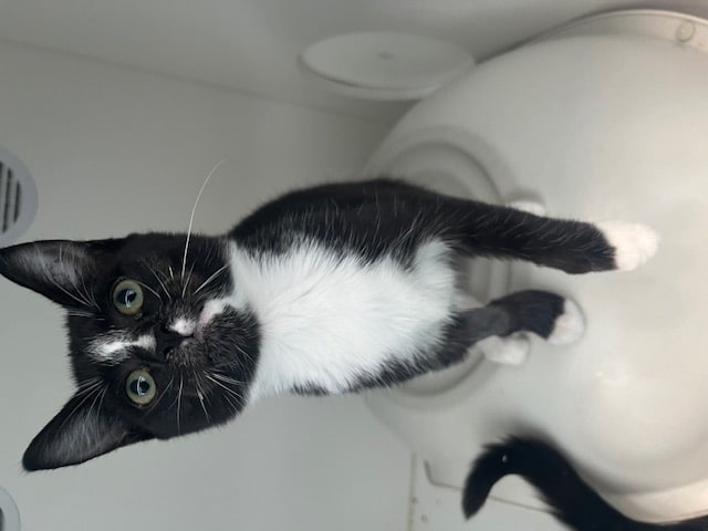 Hi there, I'm Ella, a female Domestic Short Hair kitten, about 3 Months old. I'm a curious, cuddly girl with an average energy level—I love a good mix of playful bursts and peaceful naps. I'm great with gentle hands and I have no known issues around children, so I could be a good fit for a family with kids who treat me kindly. I enjoy batting at wand toys, exploring safe corners, and getting brushed. I’m learning about litter box etiquette and I’m already litter trained. I’m looking for a forever home that can give me daily affection, gentle play, and a cozy lap to nap on after a busy day of adventures. I get along with calm, respectful cats and I’d probably do well with respectful dogs after a proper introduction. I promise to be your loyal little companion, eager for every cuddle and curious about the world. If you’re ready for a friendly, affectionate kitten with a big heart, I’m your Ella.