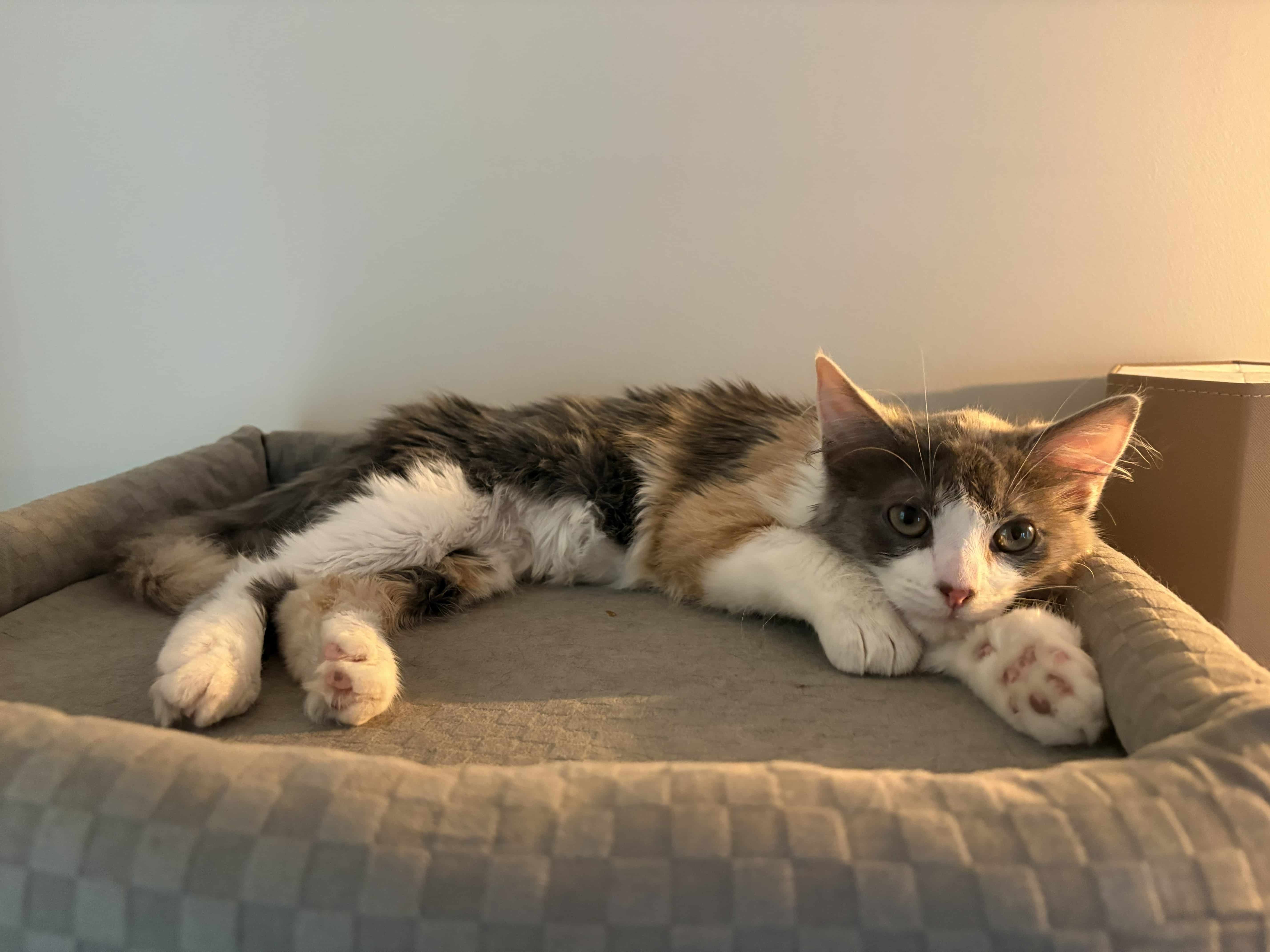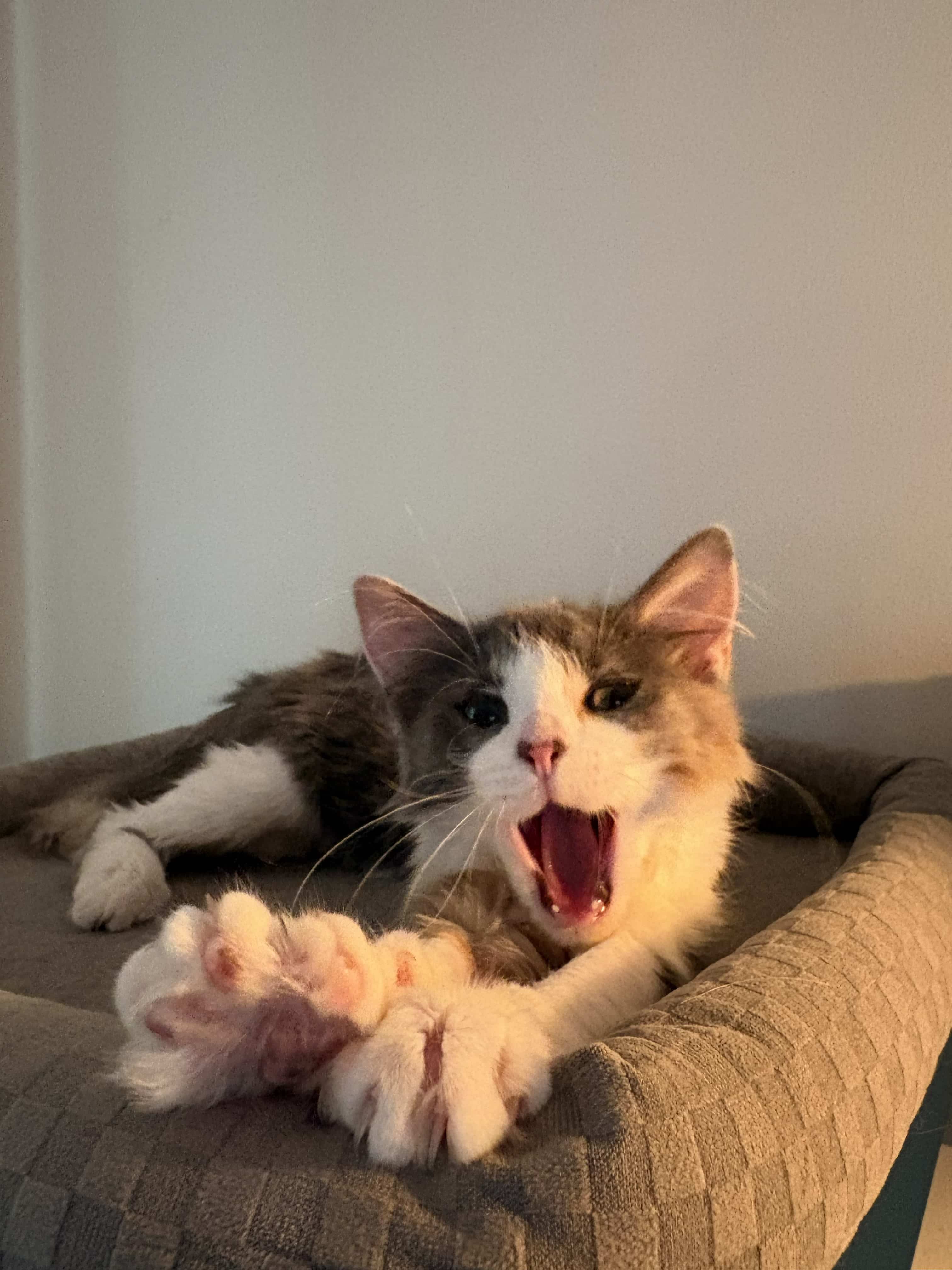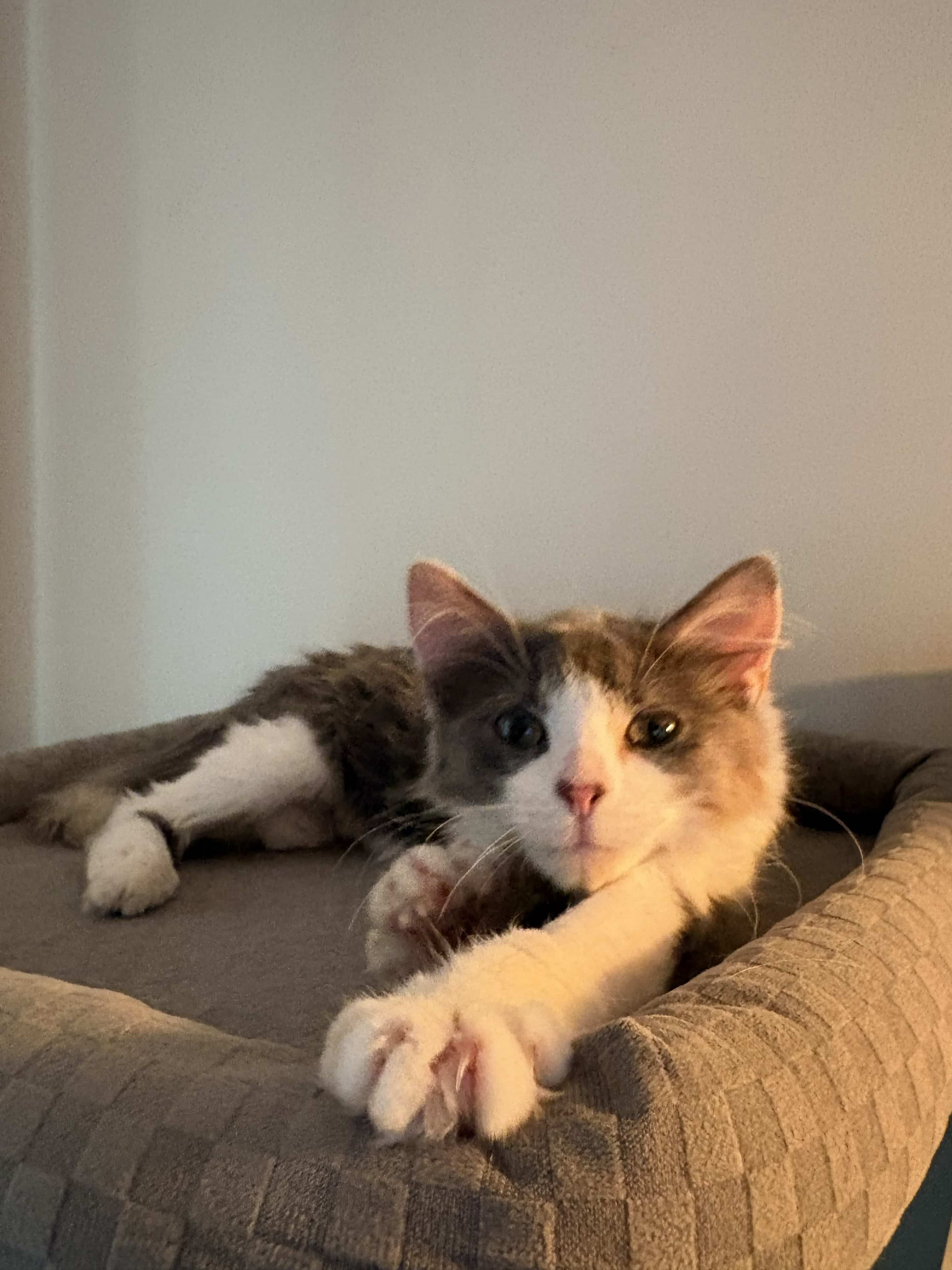 I’m a 3-month-old domestic short hair with a gentle heart and a soft, sweet nature—just like my name. I can be a little shy when I first arrive in a new place or meet new people, so I like to take my time to feel safe and comfortable. Once I’ve had a chance to settle in, my playful side starts to shine through, especially when there are toys involved (I love toys!).