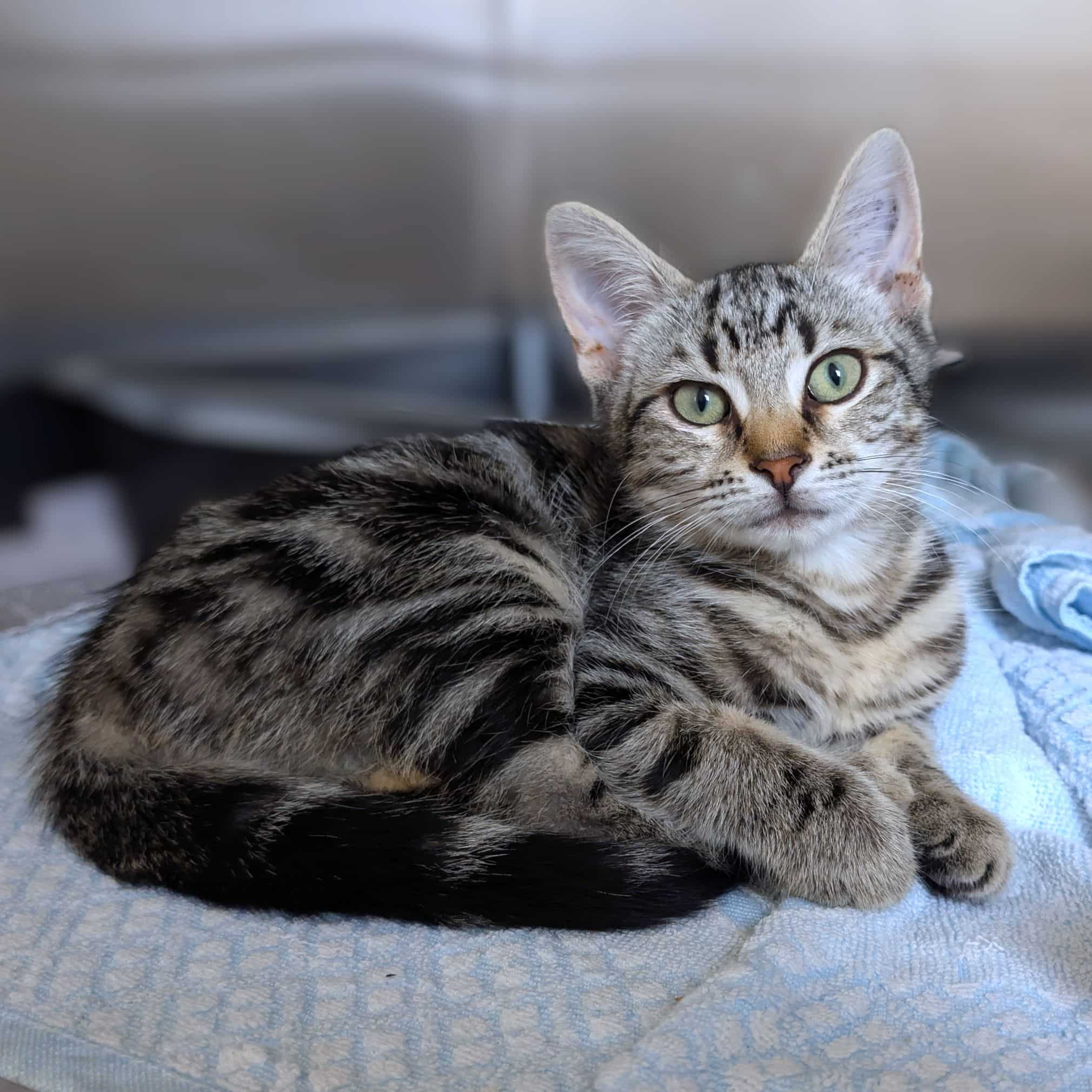 Hi, I’m Jzargo. I’m a male Domestic Short Hair kitten with an average energy level. At six months old, I’m curious, affectionate, and ready for adventures and quiet cuddle times alike. I love pouncing on feather toys, chasing string, and then curling up in a warm lap for a nap. Best with Children Aged: No known child related issues. My coat is sleek and short, easy to groom, and I’m told I’m a good listener when I’m looking for pets and reassurance. I’m hoping for a patient, loving home where I can explore, play, and settle in with a reliable routine. I’m the kind of cat who enjoys window watching as much as a climbing tree, so a home with vertical space and cozy sun spots would be perfect. If you’re looking for a friendly, inquisitive little companion to add warmth to your days, I’d love to meet you.