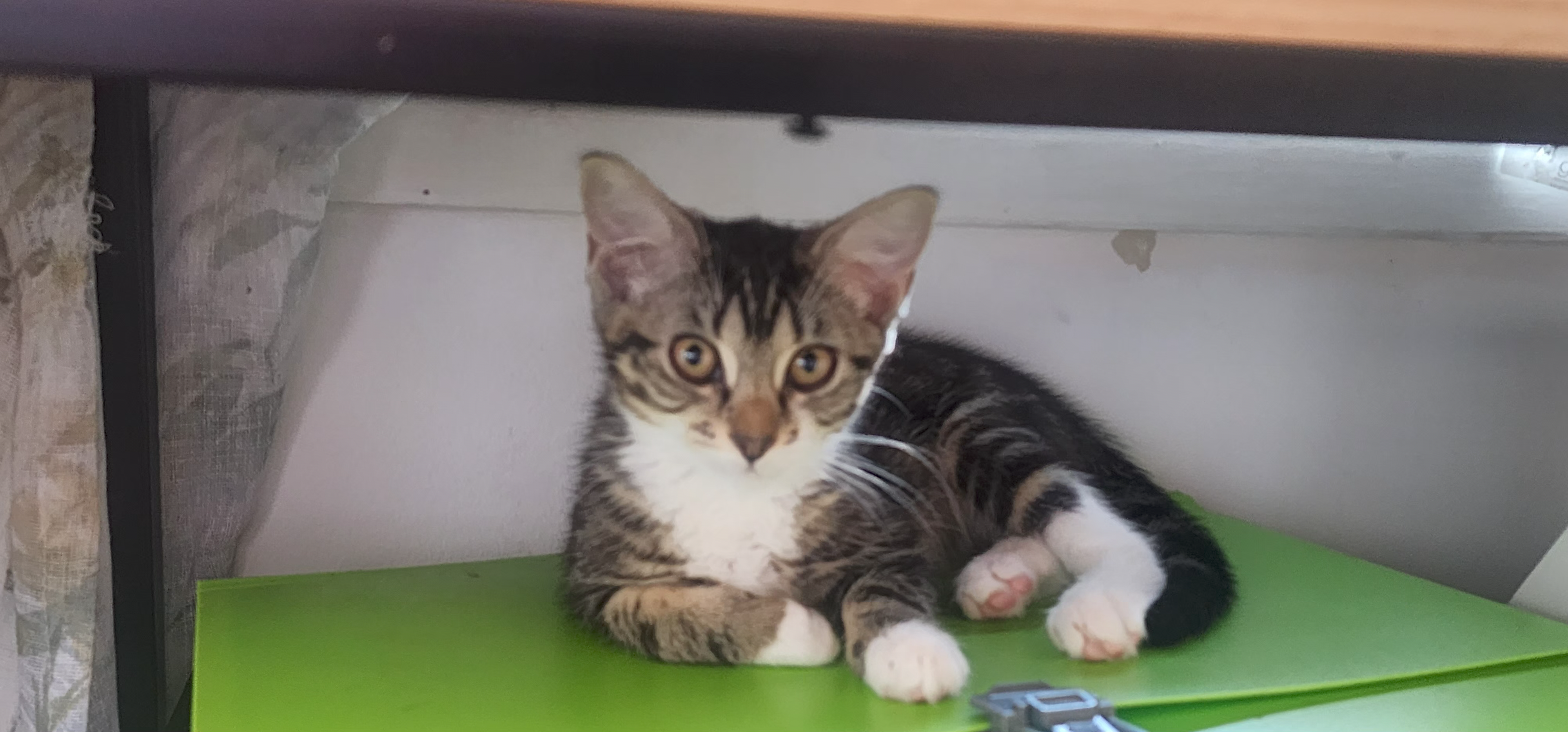 Minnie will do best in a quiet, low-key household with no children under 12. Sudden noise and lots of activity can be overwhelming for her, so she’s looking for a home that understands the importance of patience, routine, and letting a kitten set the pace. An adopter who is already familiar with cat behavior—especially kitten confidence-building and body-language cues—would be the perfect match for her.