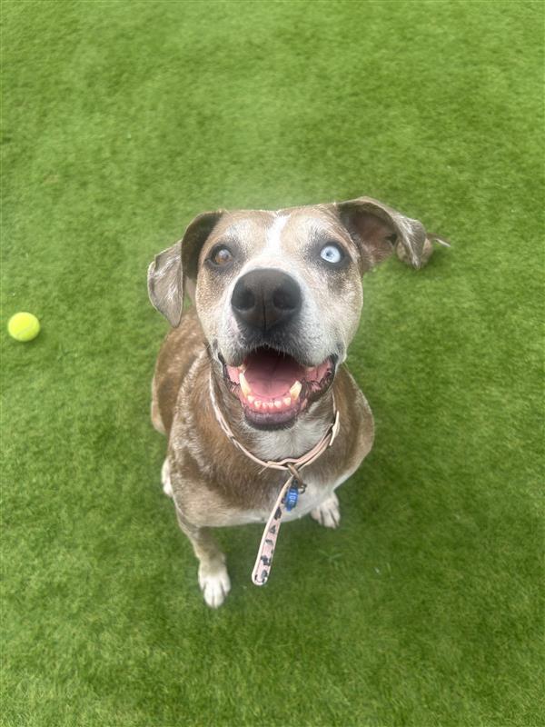 I’m a beautiful large merle girl with a big heart to match my size. Once I get to know you, I’m incredibly sweet, loyal, and love being around my people. I can be a little unsure when I first meet new faces, but give me a bit of time and space and I’ll show you just how special I am.