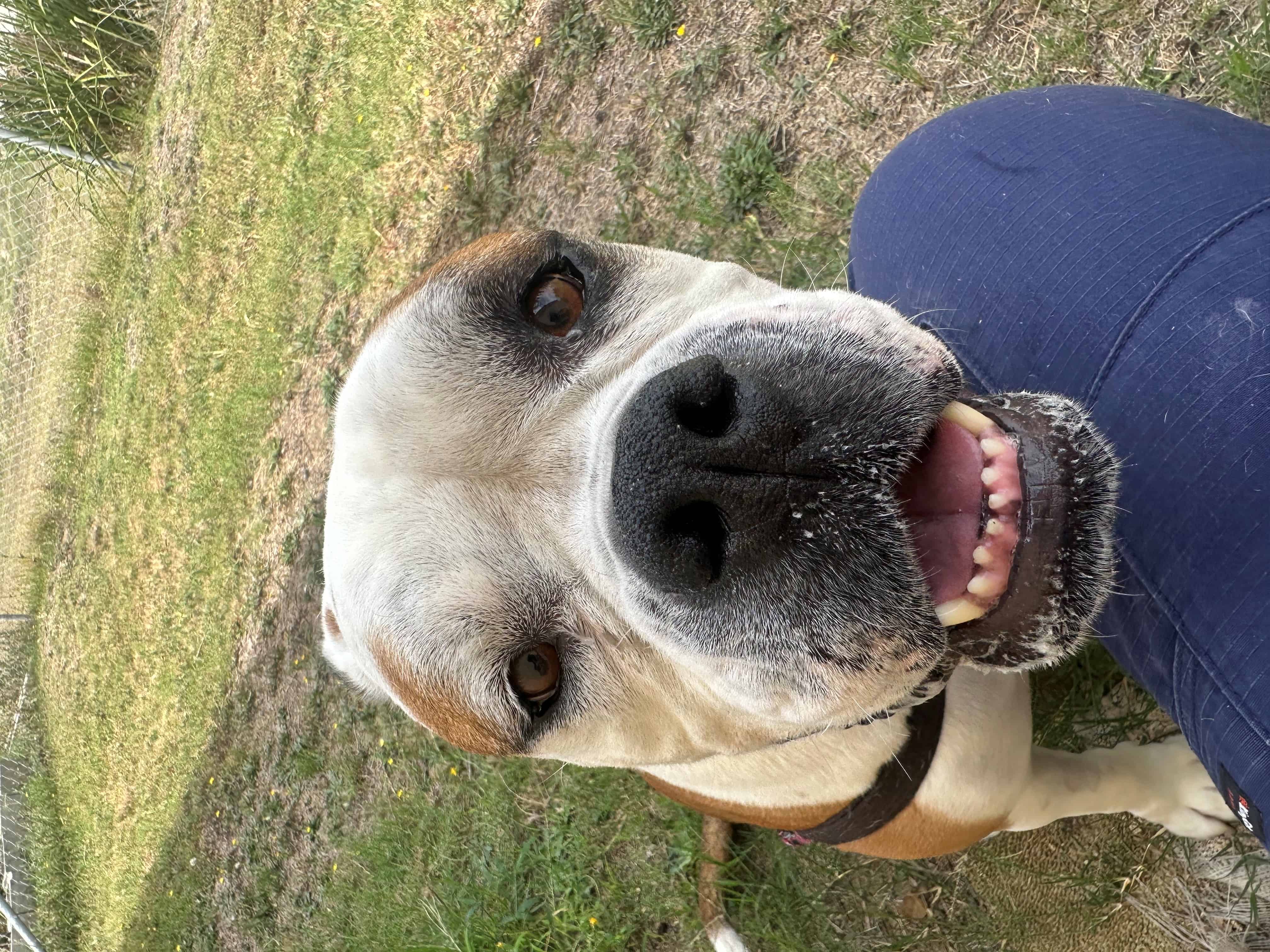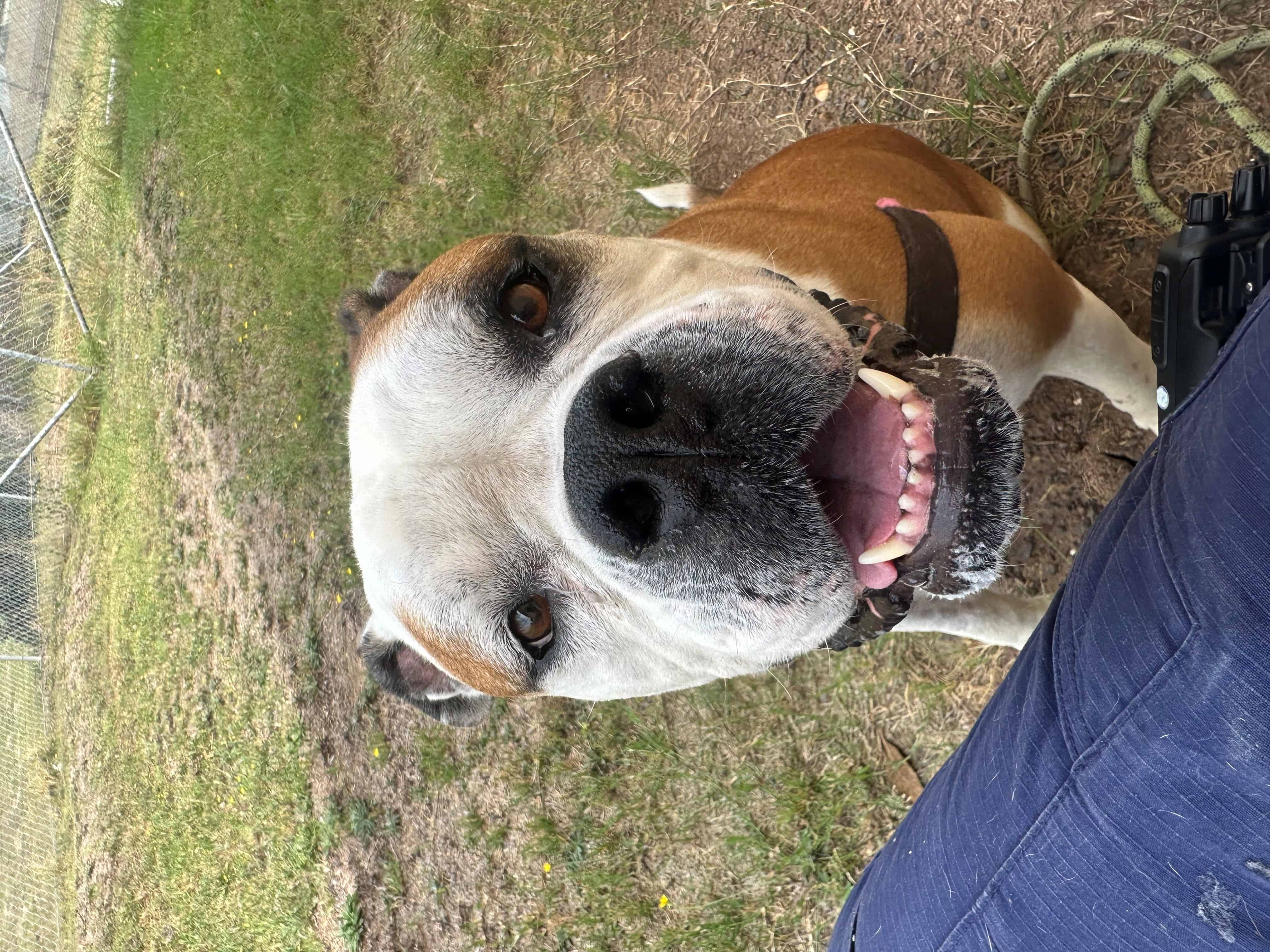 Hi, I’m Bentley — a five-year-old Australian Bulldog with a sturdy build, a soft heart, and a very serious commitment to loving my people. I’m a charming, loyal kind of guy with a little burst of happy excitement when I see you (I just can’t help it!).
