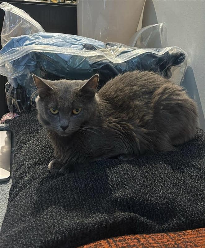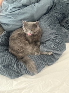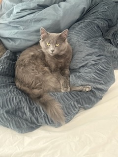 I’m a 10-month-old Domestic Medium Hair girl with the prettiest blue-grey coat — it’s super soft and very strokeable (once I know you’re my person!). I might look like a little cloud, but inside I’m still learning that the world can be a safe and gentle place.