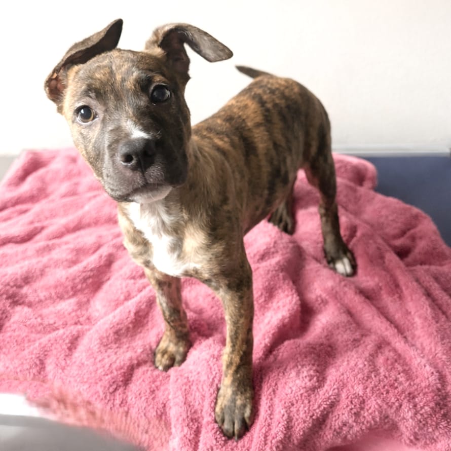 Hi there, I’m Ted. I’m a 2-month-old American Staffordshire Terrier puppy with a big heart and an even bigger curiosity. I love meeting new people, exploring new smells, and learning simple tricks. My energy is moderate—I enjoy a good play session, then cozy cuddle time.