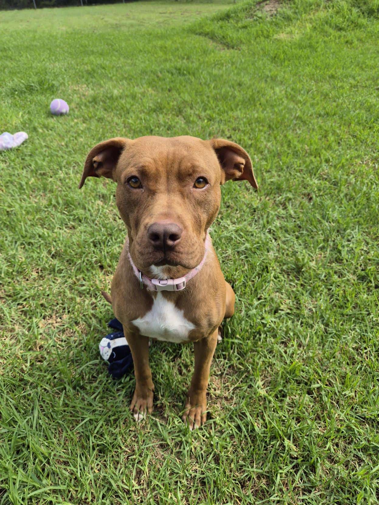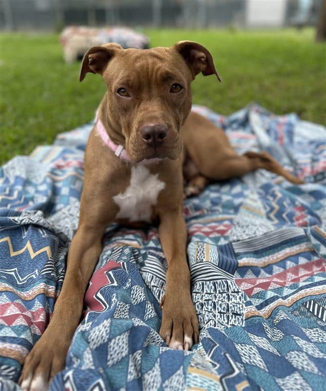 Hi, my name is Twinkle. I’m a sweet Staffordshire Bull Terrier girl with a gentle heart and a sensitive soul. The world can feel like a big, scary place for me sometimes, and because of that I can be quite nervous when I first meet new people. It’s going to take me a long time to truly trust, but with patience, kindness, and understanding, my loving personality slowly begins to shine—just like my name. Once I feel safe, I’m a very devoted and affectionate companion who just wants to be close to my person.