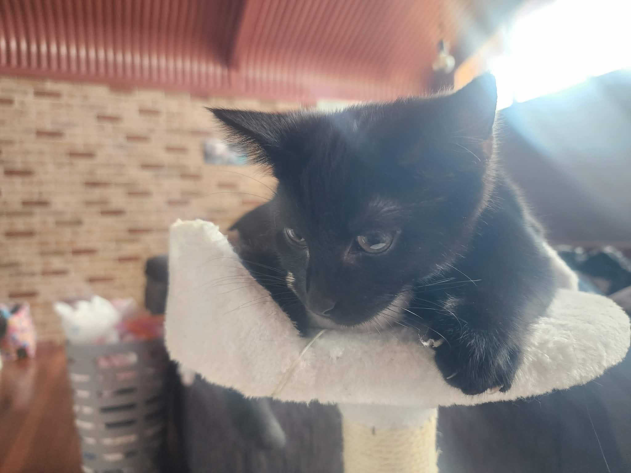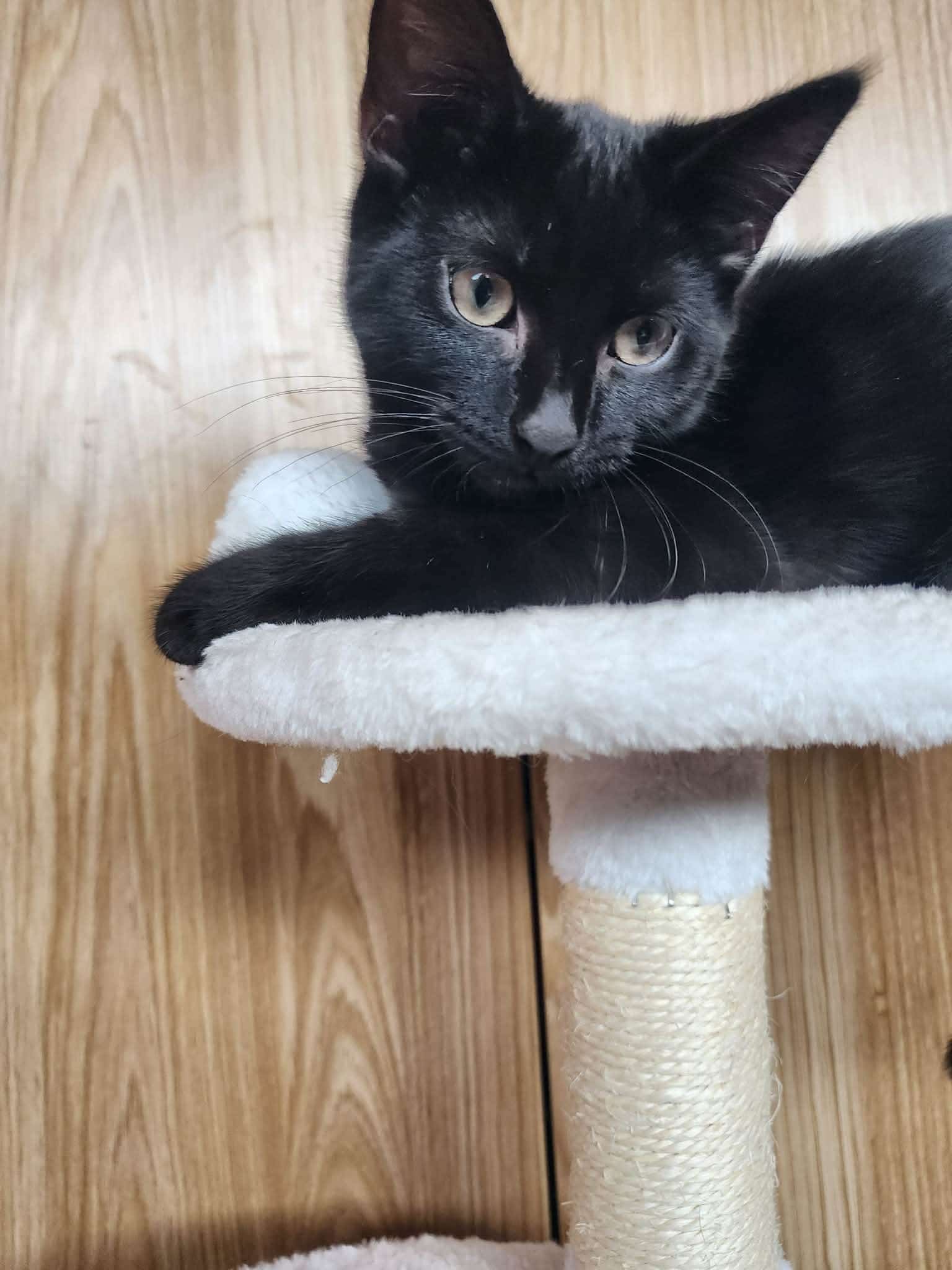 Hi, I’m Midnight, a male Domestic Short Hair kitten. Age: 3 Months. I’m energetic, curious, and playful—my energy level is high and I love constant fun. I chase feather toys, explore new spaces, and nap curled in a cozy lap after a big play session. I adapt well to busy homes and am happiest with people who can keep up with my kitten-sized adventures. I love being with my people and children, I love attention and will give you lots and lots of love!! If there is another cat in the home, we will need a slow introduction and I can slowly learn to enjoy there company. I’m healthy, social, and eager to grow into a confident feline with love, routine, and daily play. A steady feeding schedule, a comfy bed, and regular vet visits will help me blossom. If you’re seeking a bright, affectionate companion to brighten your days, I’m Midnight and I’d love to meet you.