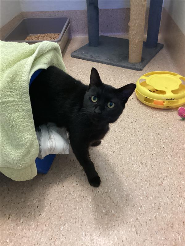 Pepper is beautiful with her shiny black coat along with her calm spirit and quiet charm. She’s the kind of cat who turns a simple sunny patch on the floor into her favorite place in the world. Give her a warm window, a soft bed, a peaceful home and she’ll be perfectly content.