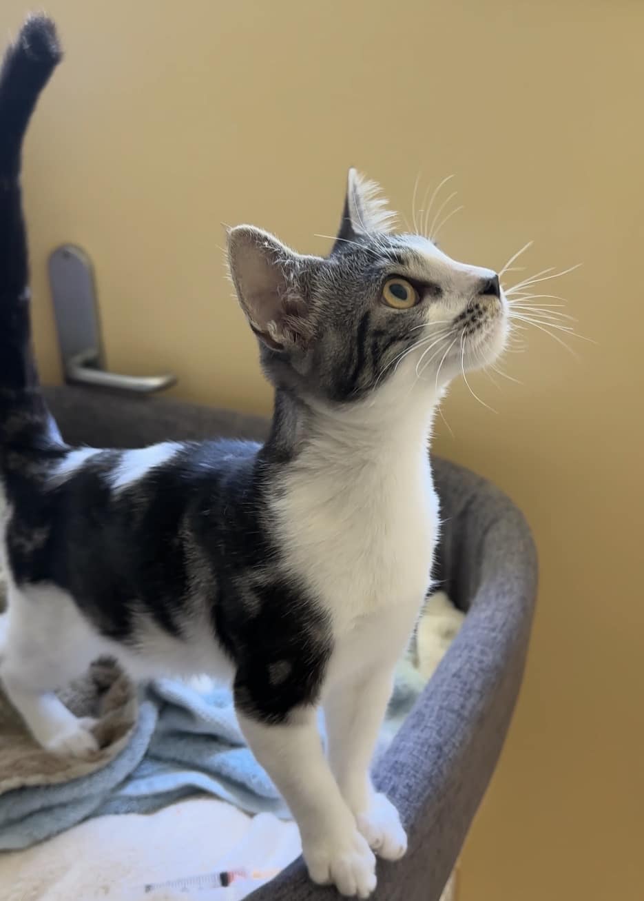 I’d suit a home that can meet my high play needs and enjoys an affectionate, lively cat who wants to be part of the daily routine. That being said, I would like a home with no children under 6, as I’m still learning and growing and need humans who can respect my boundaries. I’ll do best with people who understand I’m still a baby and won’t accidentally reinforce behaviours I’m working through as I learn how to navigate the world.