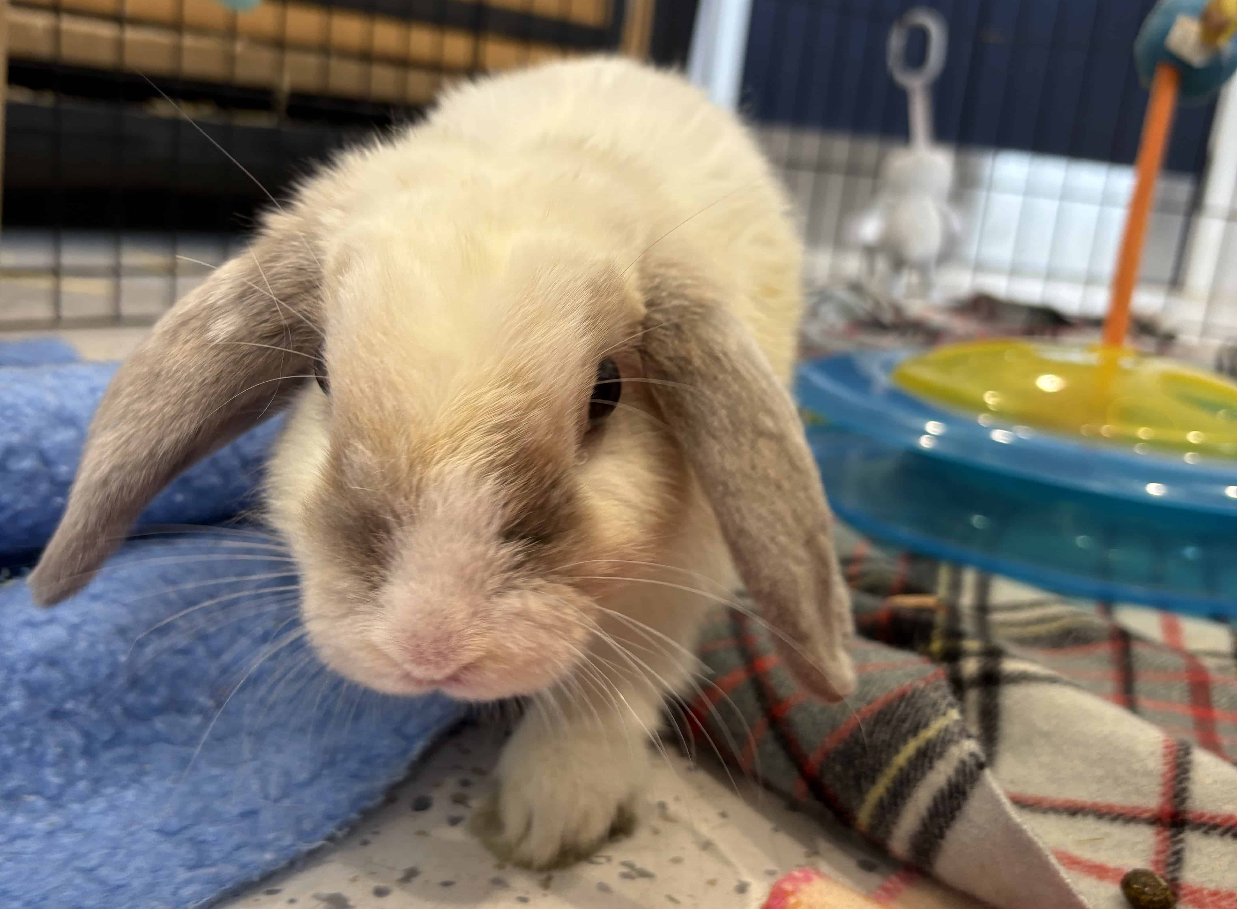 Aperol is a gentle, curious bunny with a soft coat and an even softer heart. Aperol is bonded with Tom, they will need a family who is able to care for both of them (and love them equally!) He has a natural sense of wonder about the world—whether it’s investigating a new corner of the room, sniffing out a hidden treat, or quietly observing everything around him with his bright, thoughtful eyes.